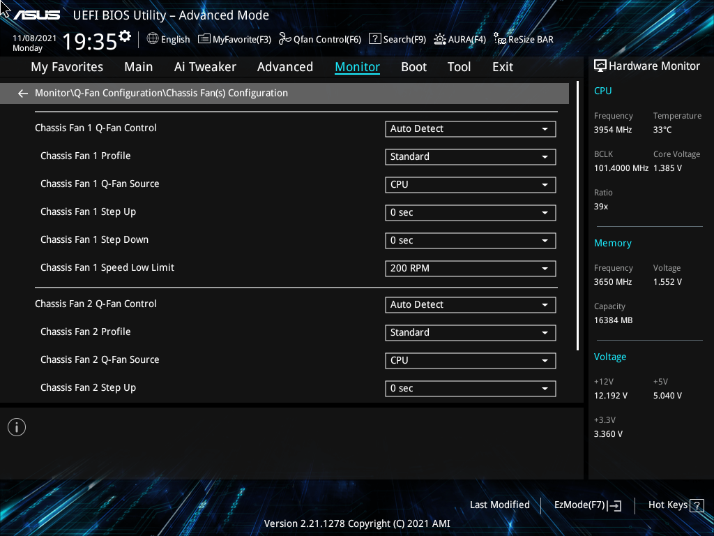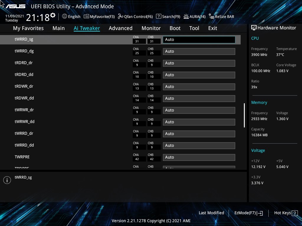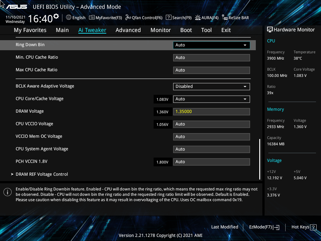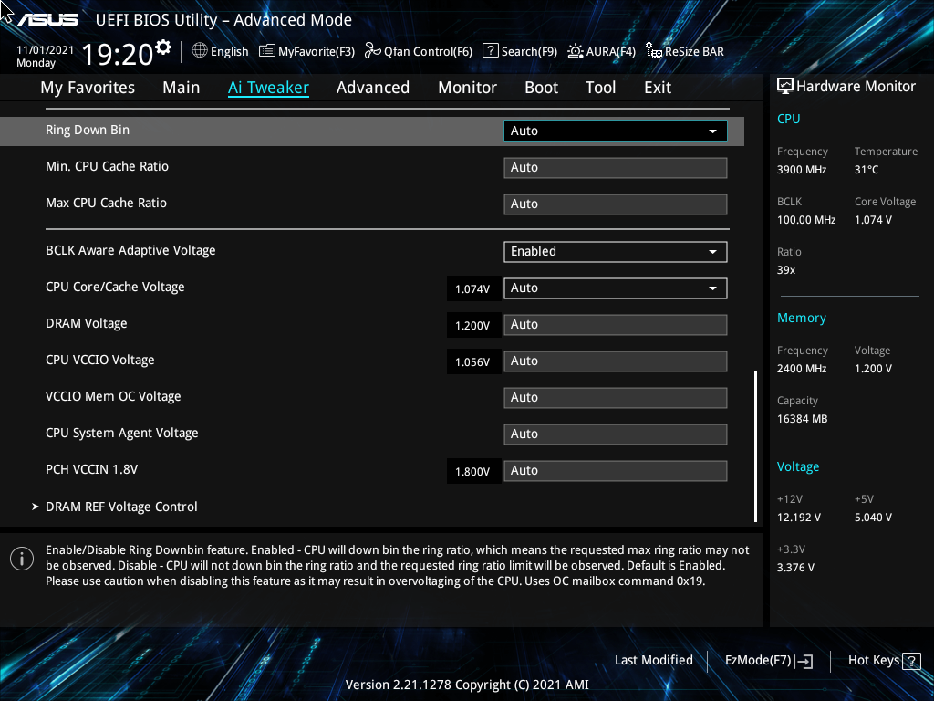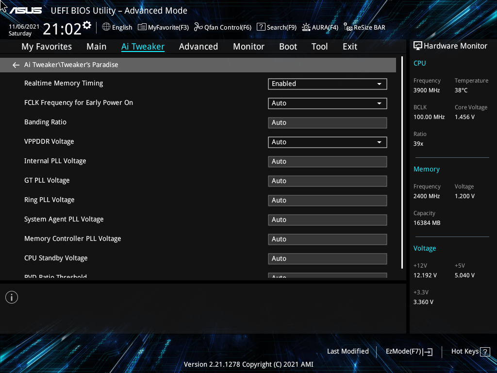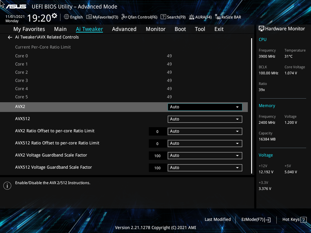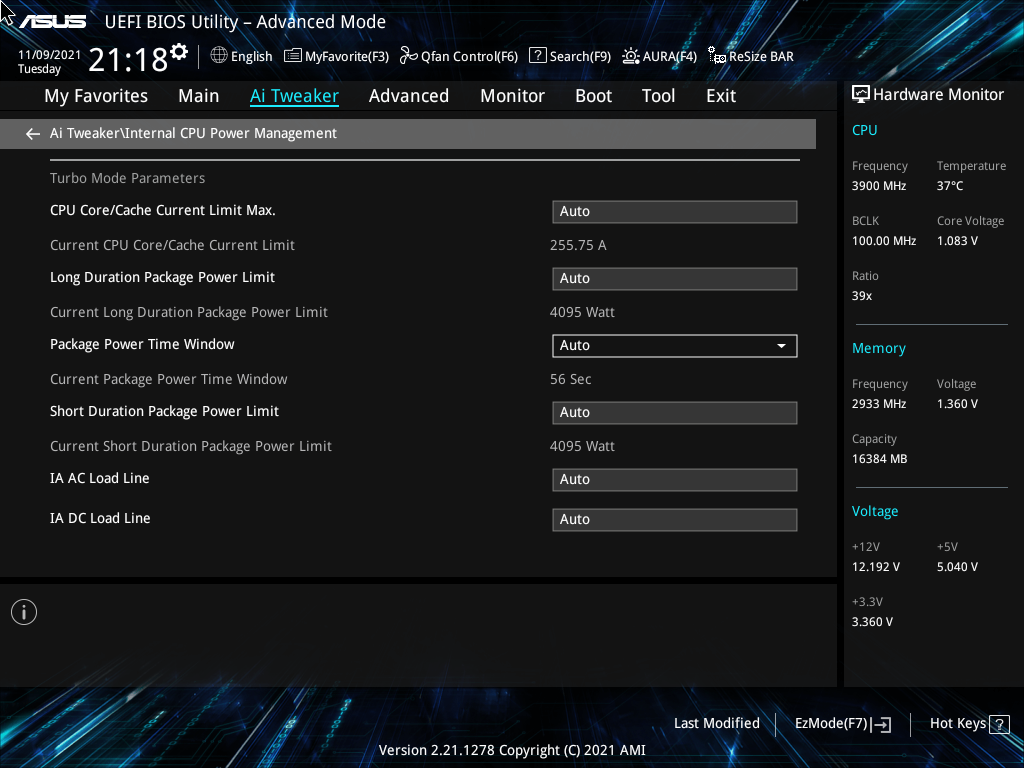 Здесь схема отрабатывала ровно так же, как и на TUF Gaming Z590-Plus WiFi: с несложными задачами частота ЦП была выше, как и питающее напряжение; использование всех потоков частоту на ядрах уравнивало, снижалось и напряжение. Нет проблем с температурами и стабильностью ПК.