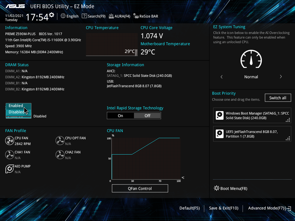 - процессор: Intel Core i5-11600K (3,9 ГГц);