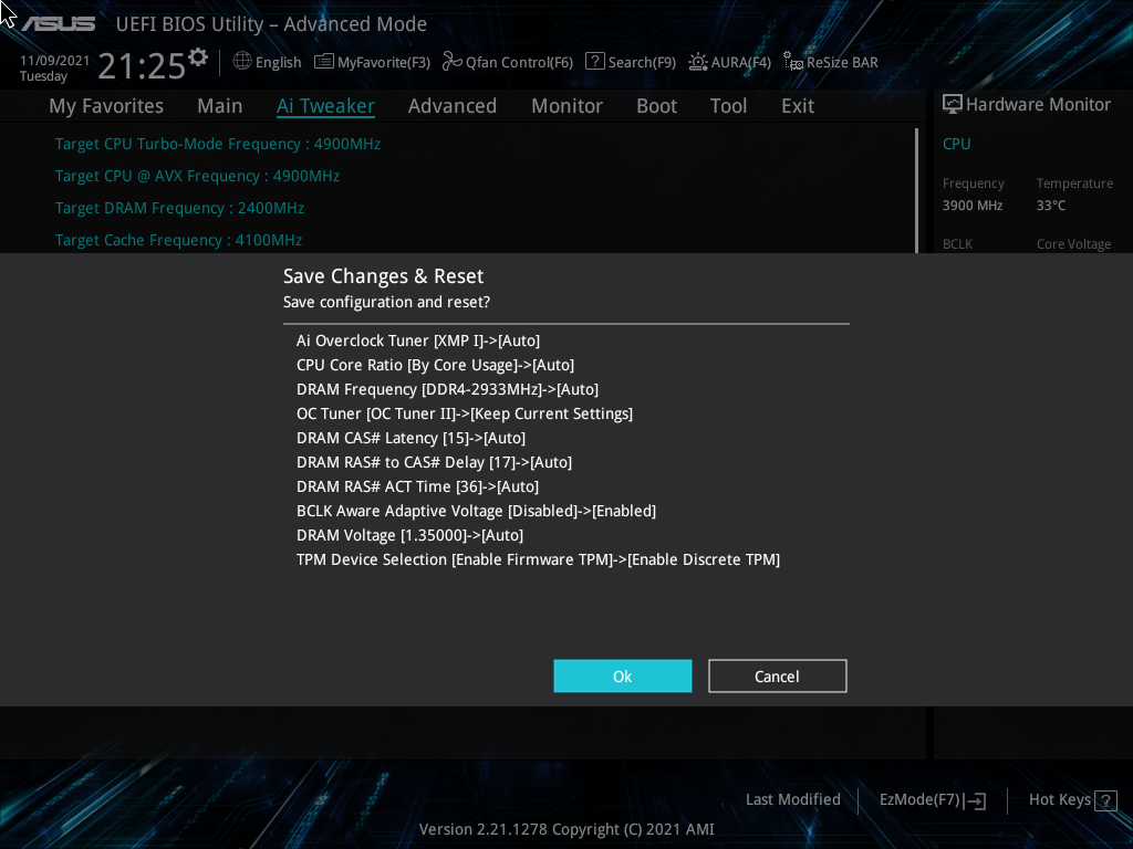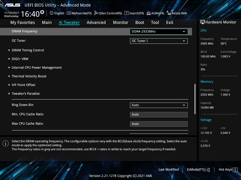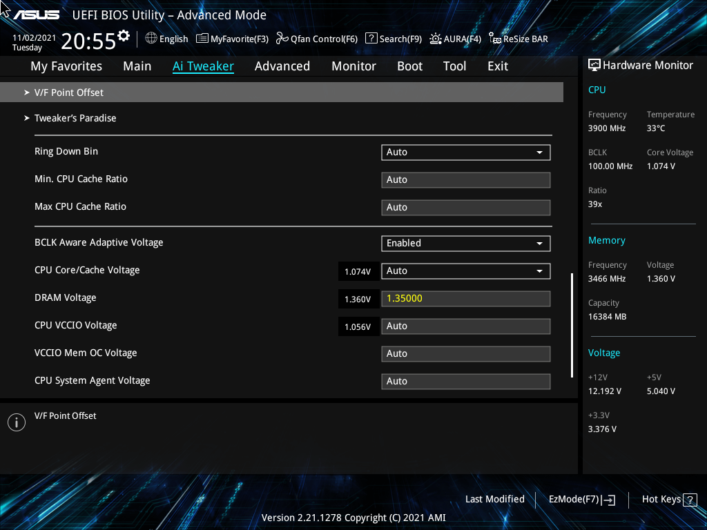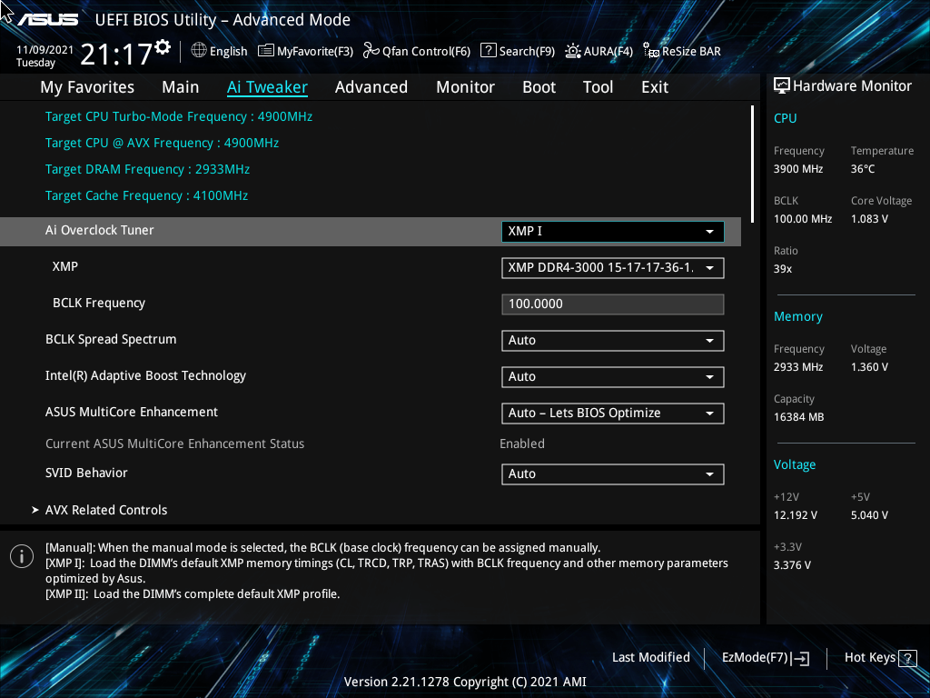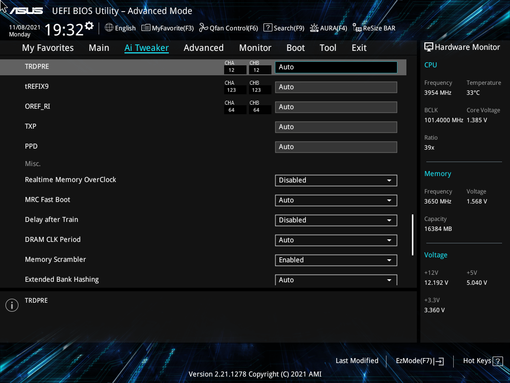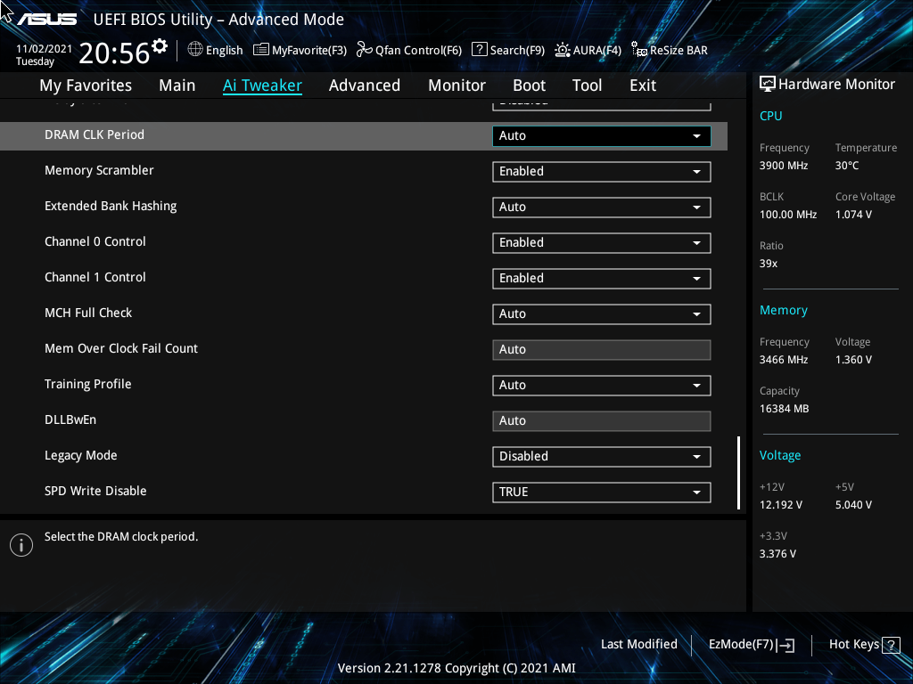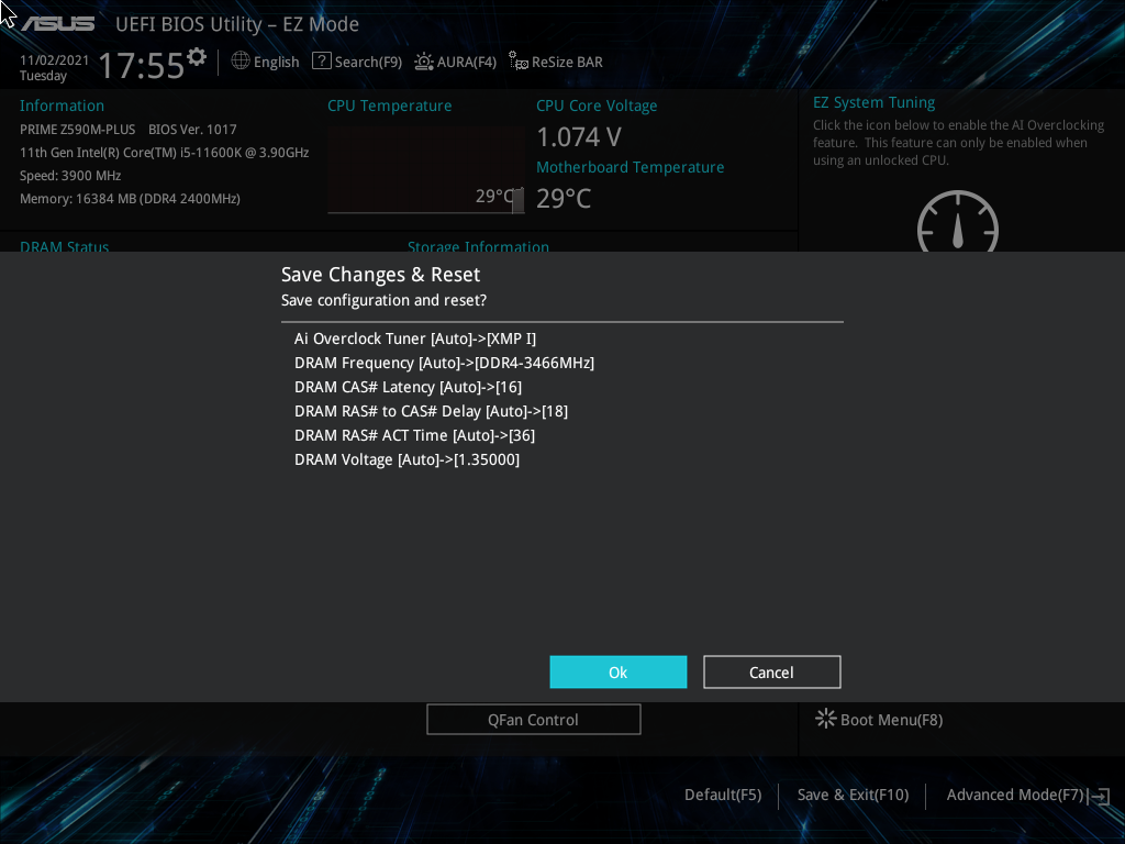 Ускорим память активацией XMP. В UEFI прослеживается небольшое число модифицированных величин.
