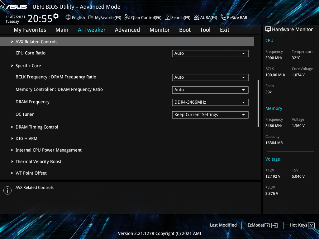 Рассмотренная плата ASUS Prime Z590M-Plus полностью соответствует своему позиционированию, и чуда по разгону ждать от нее не стоит. Подсистема питания устройства вполне способна совладать с разблокированными лимитами мощности у ЦП поколения Rocket Lake-S, когда их потребление и без оверклокинга заметно выше паспортного. Но «запаса» под увеличенные частоты, требующие большего напряжения, нет. Продукту будет сложно справиться с многочасовыми нагрузками и мучительными сценариями, в особенности с привлечением AVX-512. Организовав хороший продув в корпусе, положение вещей получится заметно улучшить. Отследить всё поможет температурный датчик VRM, его показания доступны к использованию в составе алгоритмов управления работой вентиляторов уже через оболочку UEFI. Преимуществом этого изделия могу назвать разгон процессора по динамической формуле ядер, которая сможет быть полезной при разрозненной нагрузке. В результате использования не максимального числа потоков, частота окажется выше, это может стать полезным в играх. Ещё одой особенностью плат на базе Z590 является полный спектр настроек под отладку векторных инструкций, начиная с понижающих множителей, чего материнские платы на более простых чипах планово лишены. Разгон памяти традиционно ограничивается делителем Gear 1, потому особых отличий от других изделий тут нет, во всяком случае, уменьшенный размер платы не стал поводом для каких-то упрощений в этом аспекте. Функциональность UEFI самая обширная и не уступает более дорогим моделям. Множество интерфейсных портов в составе продукта может пригодиться в ходе насыщения компьютера различным оборудованием. На задней панели есть выходы USB всех поколений, включая самое скоростное. В сухом остатке, именно размер Prime Z590M-Plus сможет привлечь к ней внимание потенциального покупателя. Продуктивность системы окажется на высоком уровне, КПД преобразователя неплох, а прошивка проработана и стабильна, потому для разминки энтузиазма её будет достаточно, однако совершенно понятно, что никакие рекорды разгонов тут не покорятся. Целевое назначение очевидно — это разовая сборка ПК без программных бонусов для звуковой и сетевой подсистем, определённая категория покупателей симпатизирует такому подходу, а значит нишу рынка производитель заполнил вполне успешно.