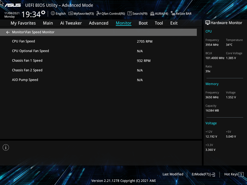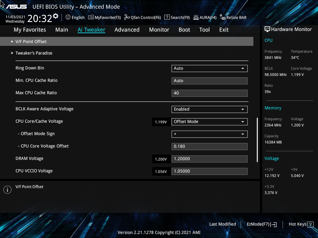 - память: Kingston HyperX Fury RGB HX434C16FB3AK2/16 (2x8 ГБ, 3466 МГц, 16-18-18-36-2T, 1,35 В, Samsung B-die);