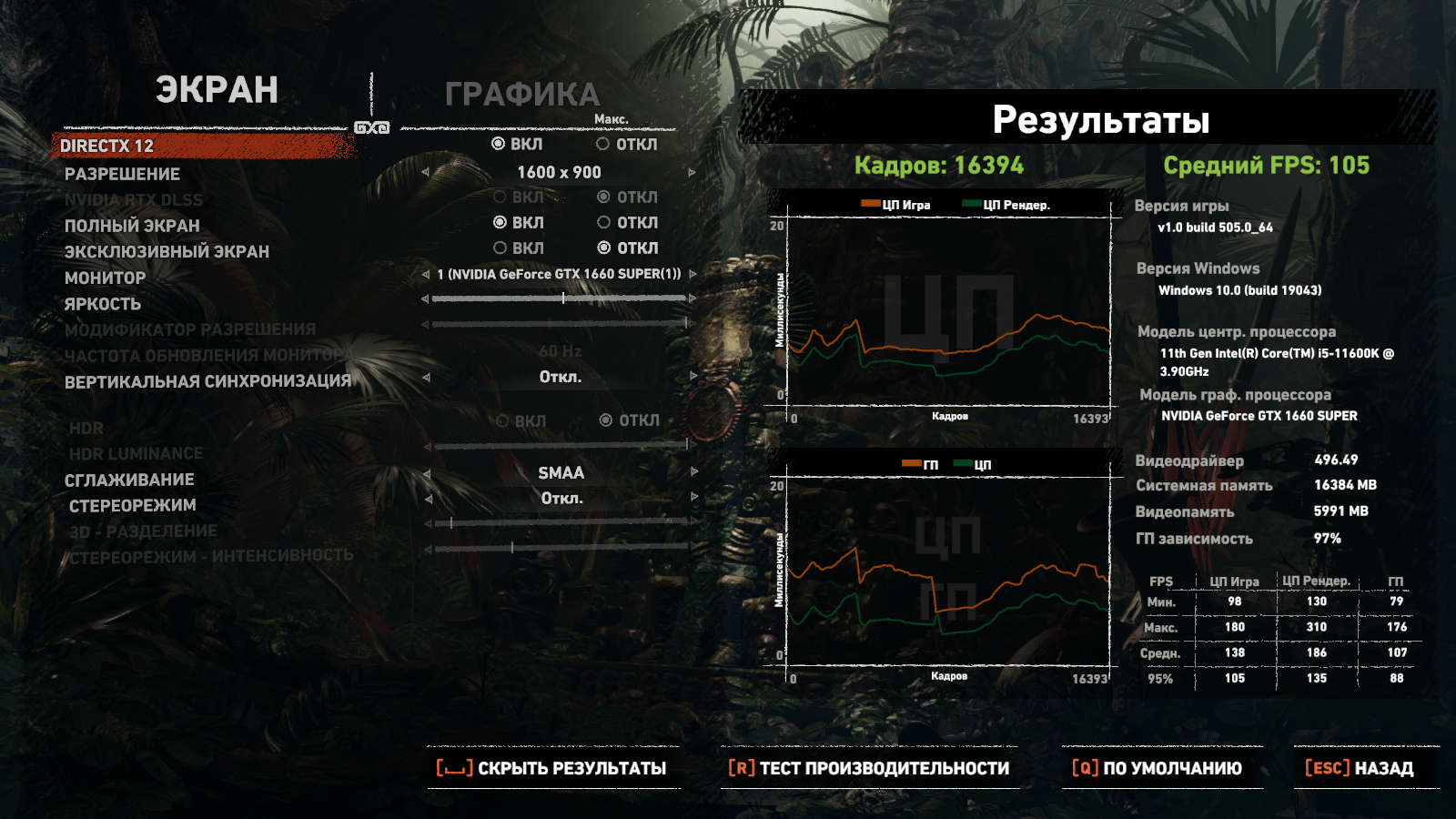 - видеокарта: ASUS ROG-STRIX-GTX1660S-O6G-Gaming (Performance mode);