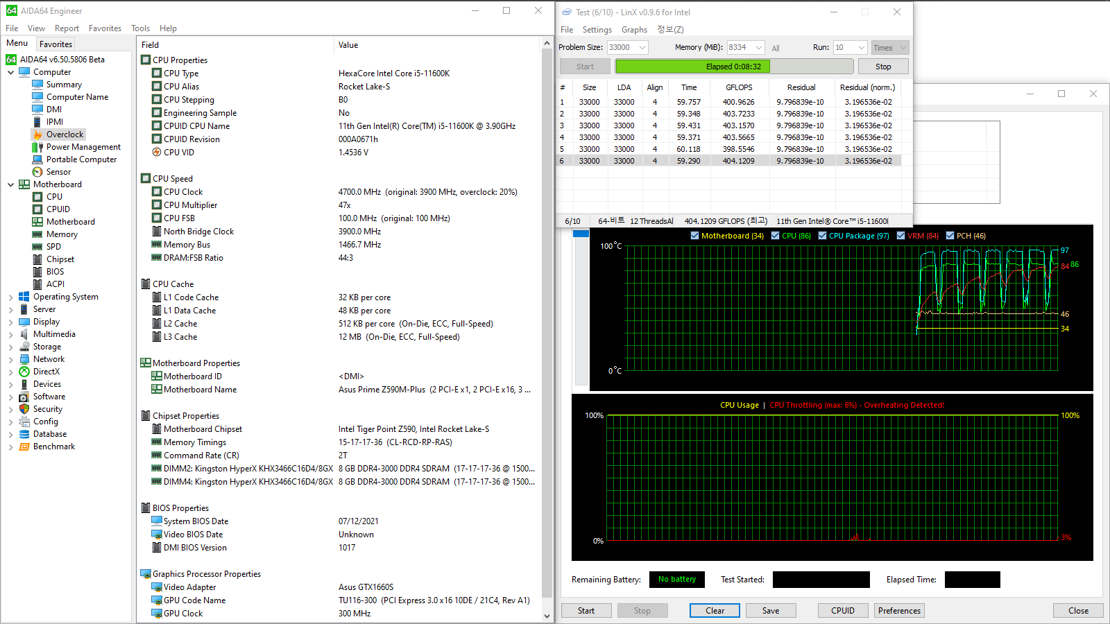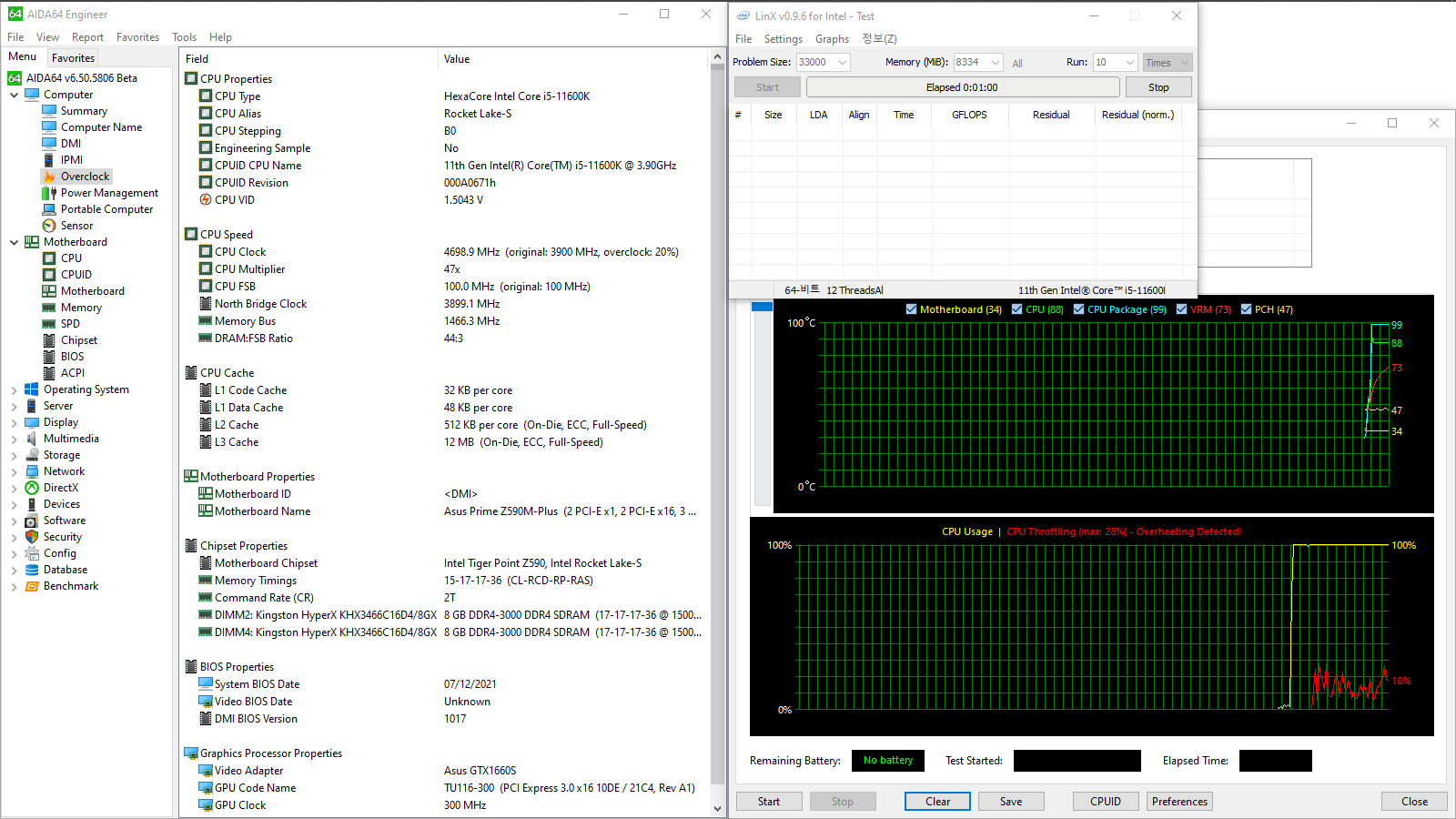 Тепловые испытания проходили в условиях комнатной температуры величиной 24–25 °C. Собственные замеры тыльной стороны изделия пирометром в ходе испытаний оказались немного ниже, чем отображал датчик VRM, а значит этим показаниям можно смело доверять. Без дополнительного обдува испытуемая прошла все наши экспресс-тесты, однако тенденция роста температур налицо, в особенности с привлечением задач с AVX-512. Дело вовсе не в неправильном напряжении, хотя, как мы знаем, его для Core i5-11600K можно вручную снизить без ущерба для стабильности системы, тем самым добившись снижения тепловыделения и экономии энергии.