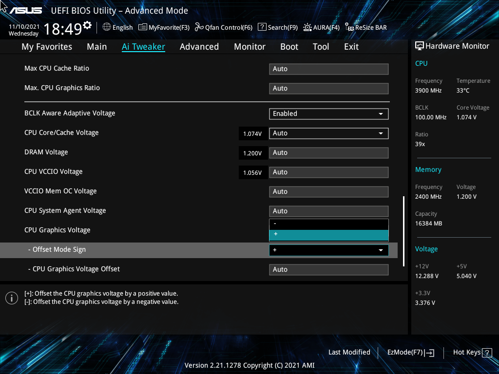 | CPU Graphics Voltage Offset (В) | (+/–) 0,005–0,635 | 0,005 |
