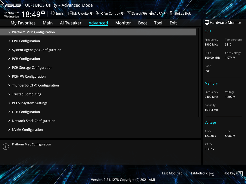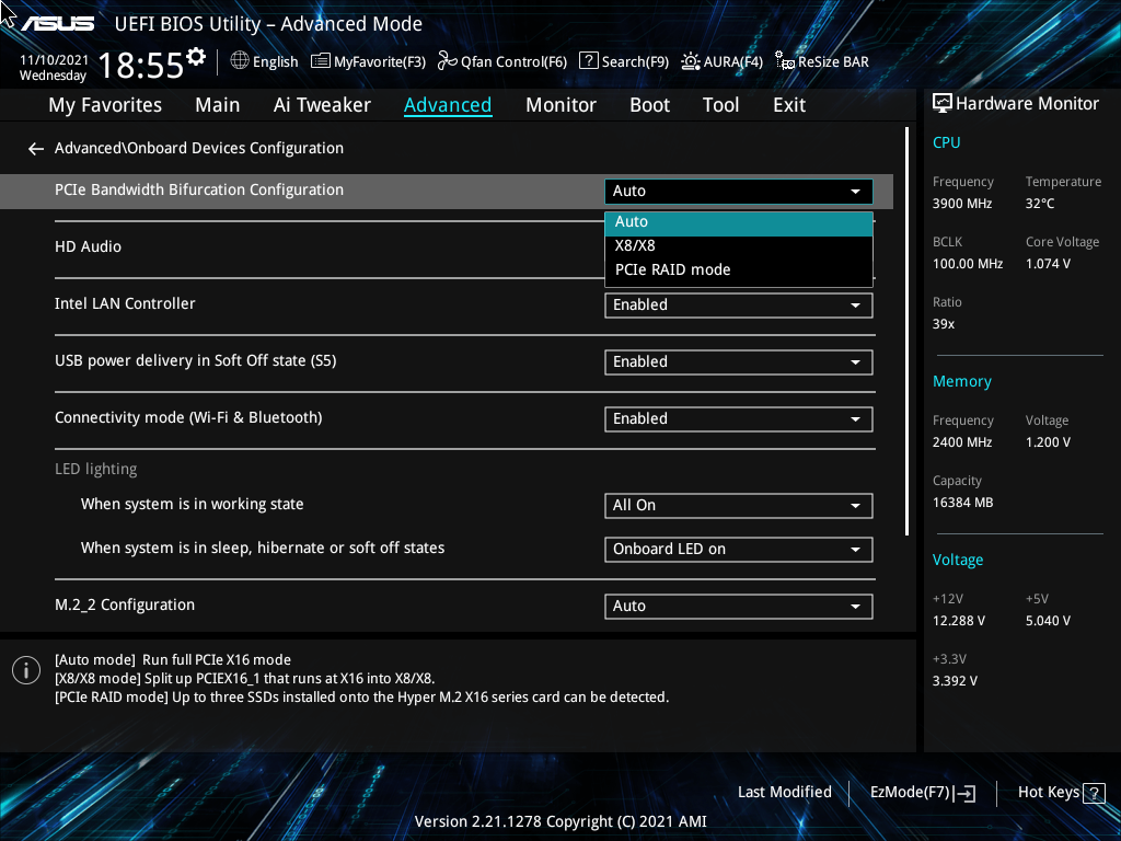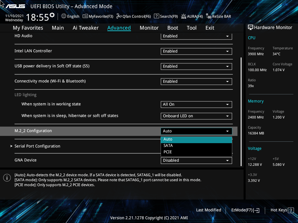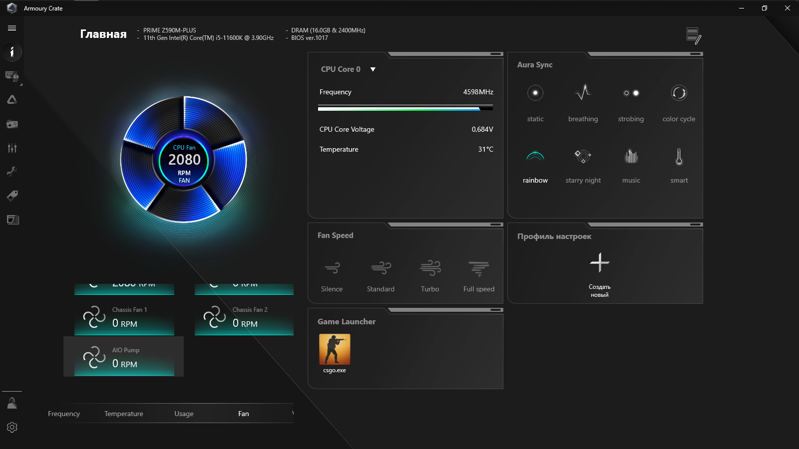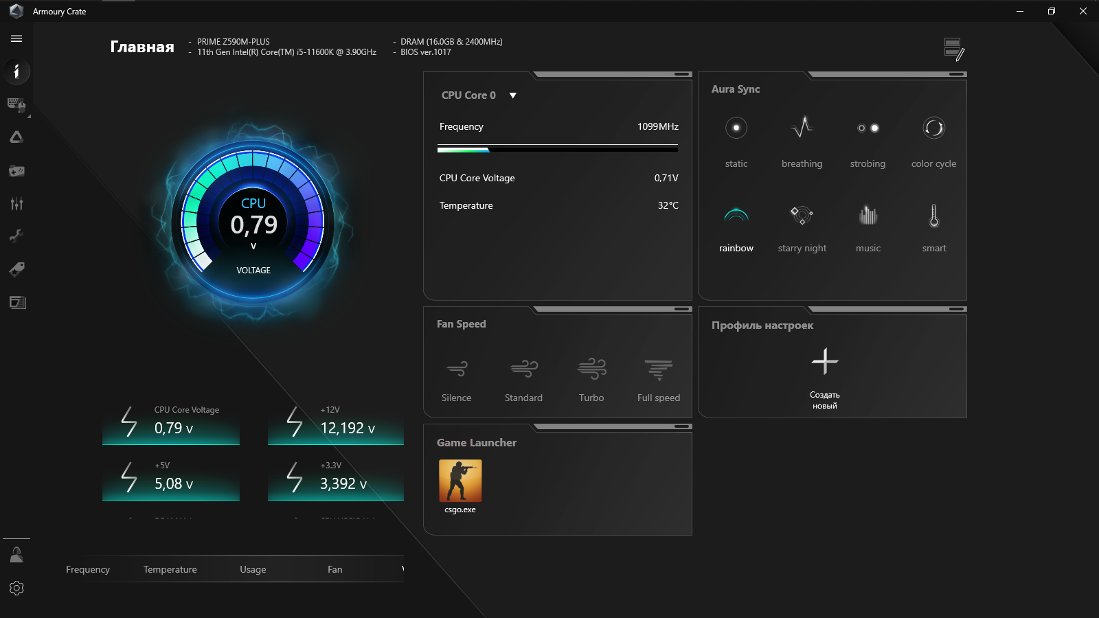 | Дополнительные возможности | Armoury Crate, Aura Sync, Fan Xpert 4, Thunderbolt header |