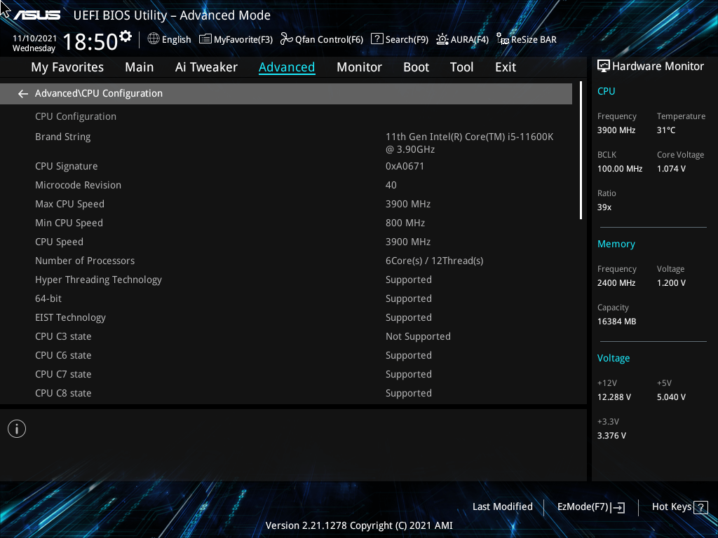 - процессор: Intel Core i5-11600K (3,9 ГГц);