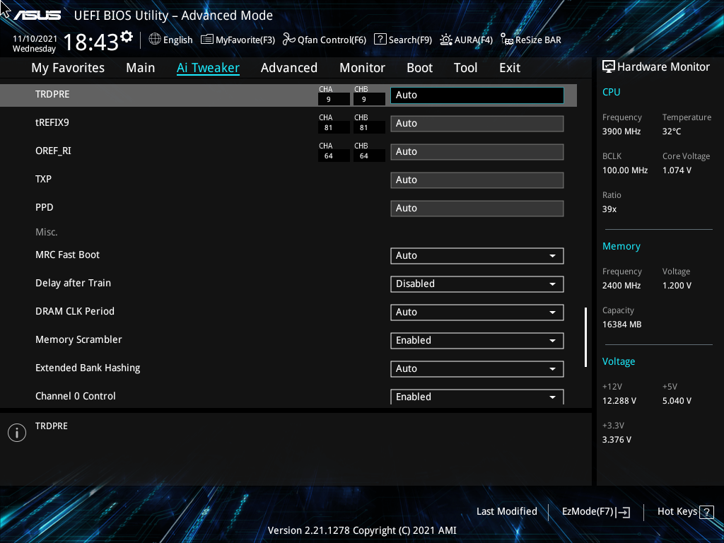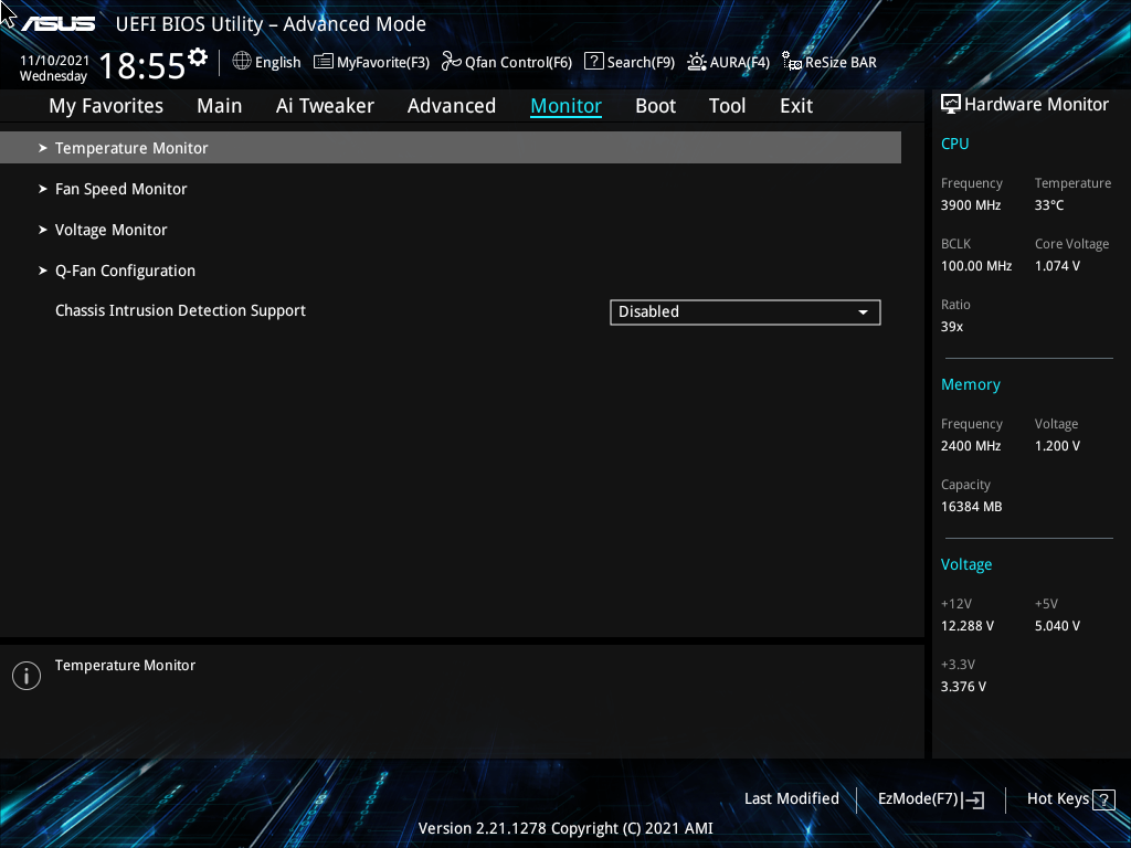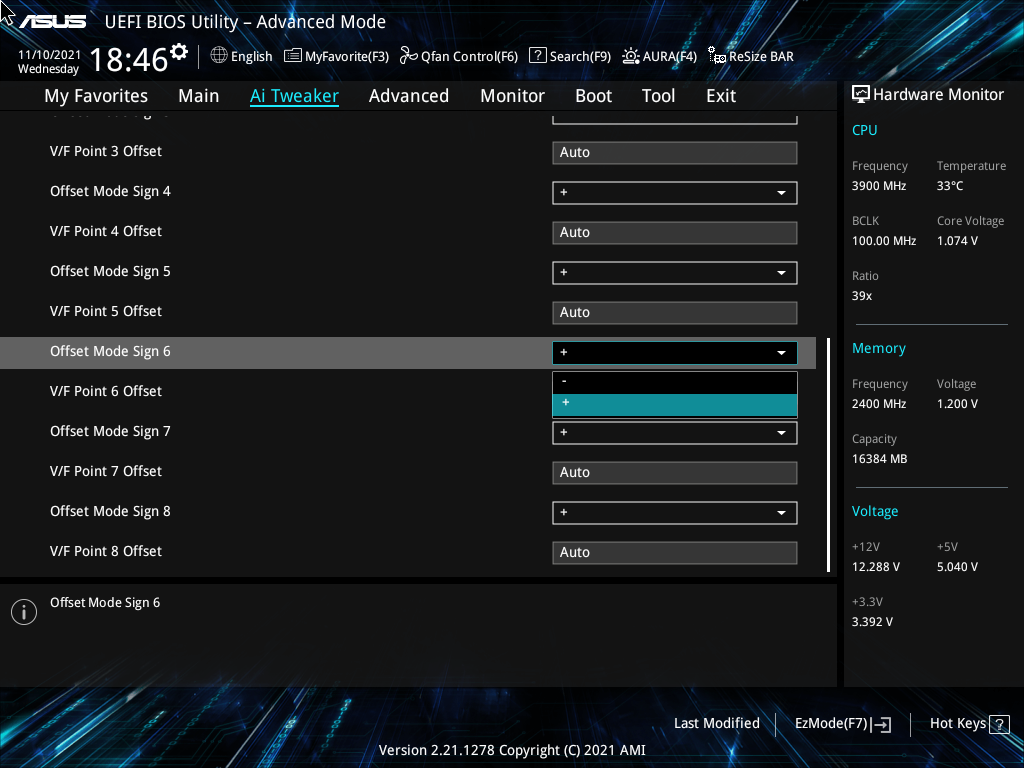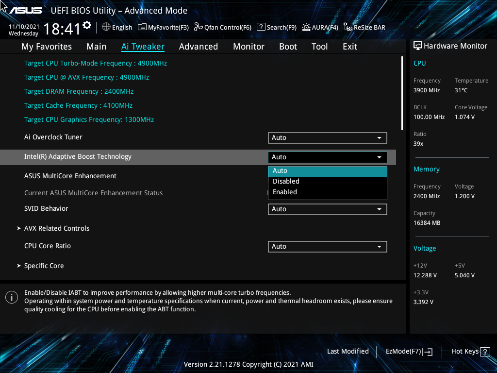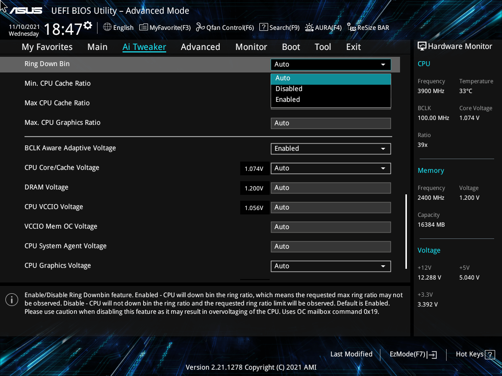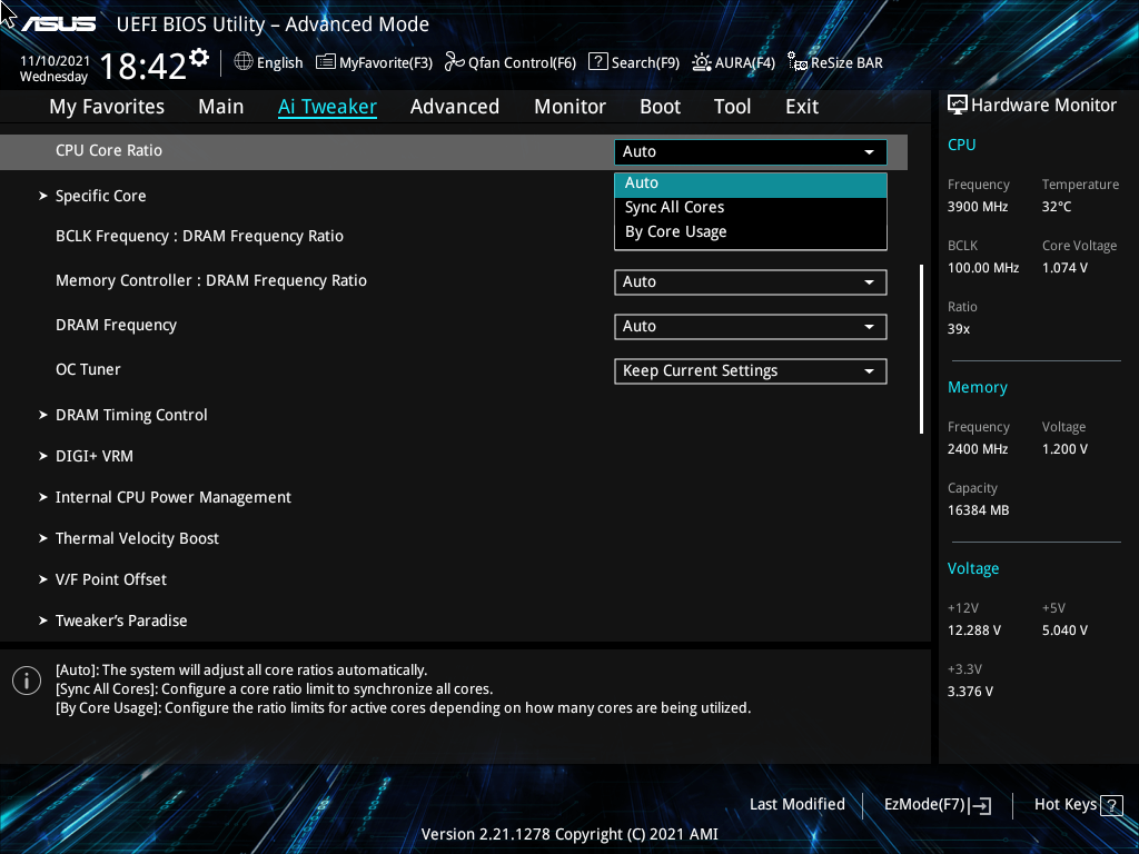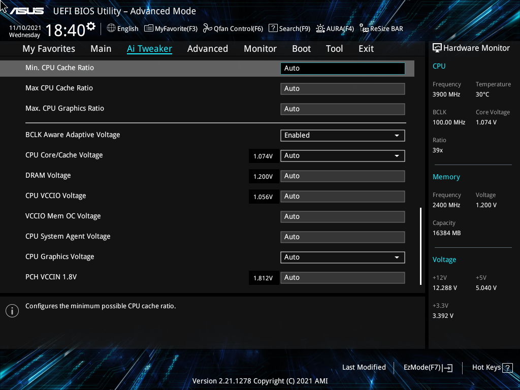 Раздел Ai Tweaker наполнен ровно так же, как у более статусной TUF Gaming Z590-Plus WiFi, то есть ни о каких упрощениях искусственного характера тут нет и речи. Вместе с тем, наблюдение за уровнями SA и IO 2 Voltage всё так же отсутствует.