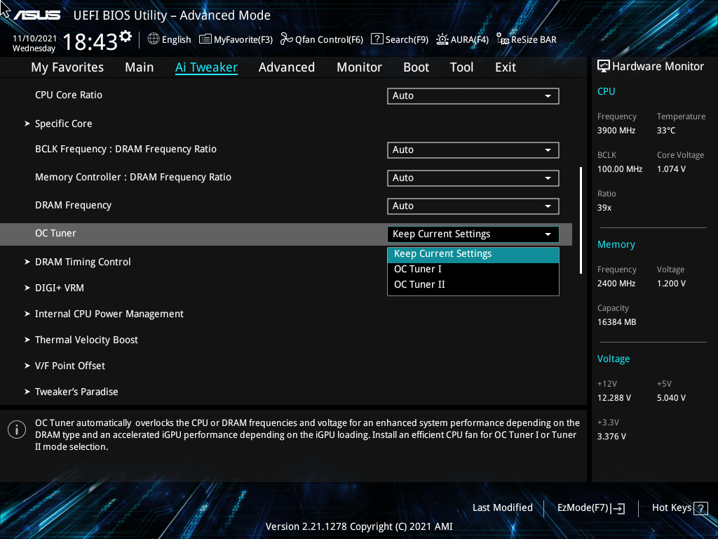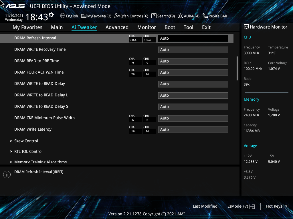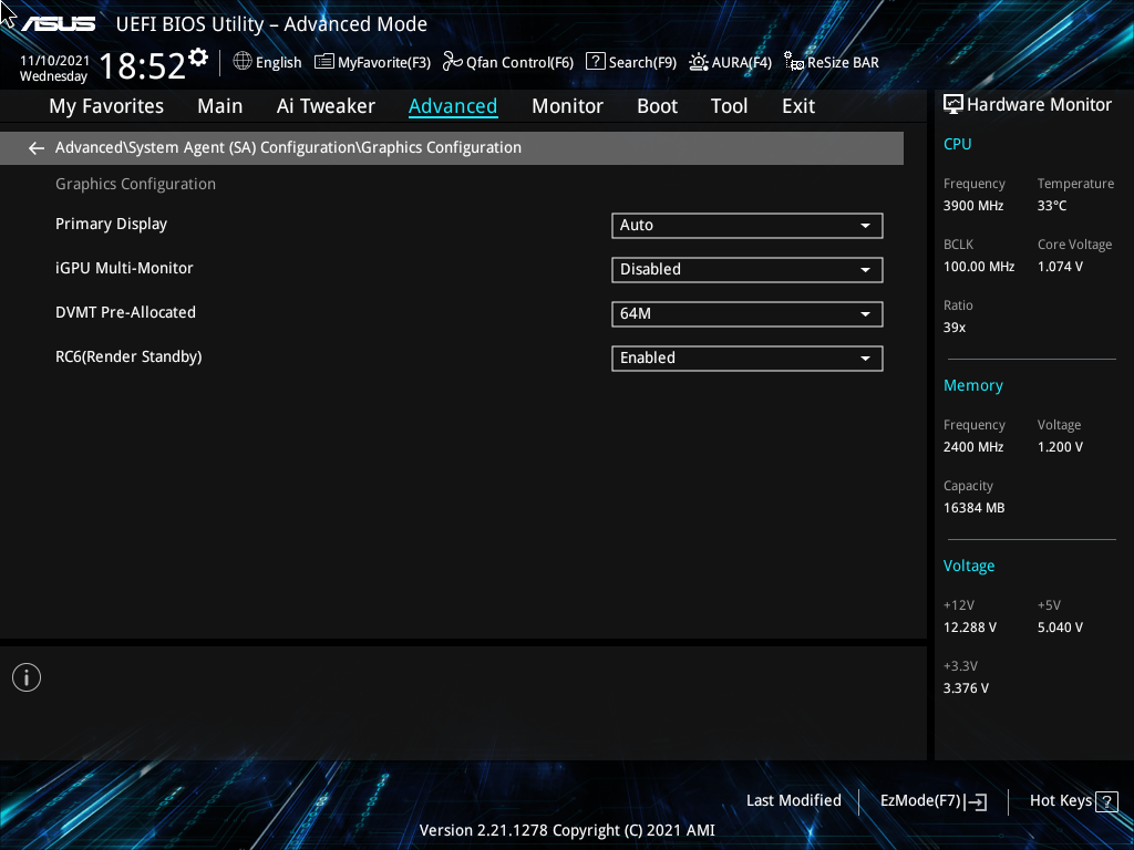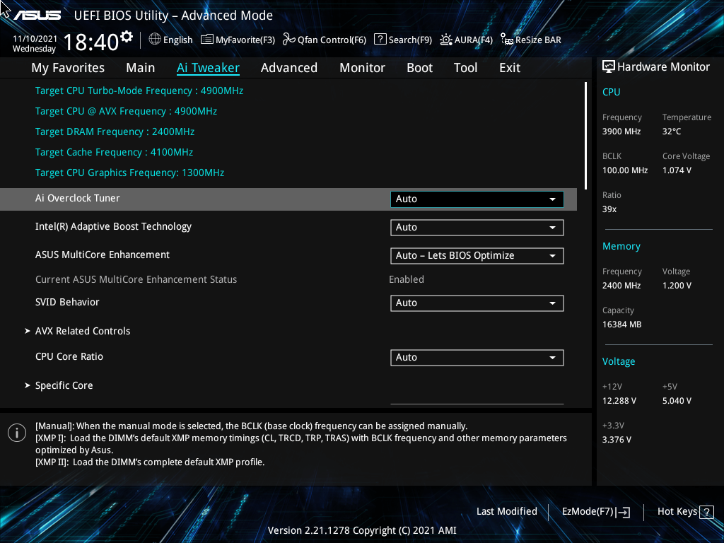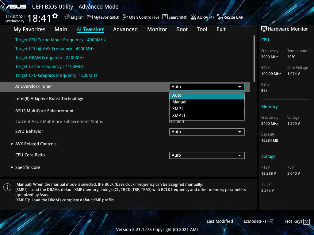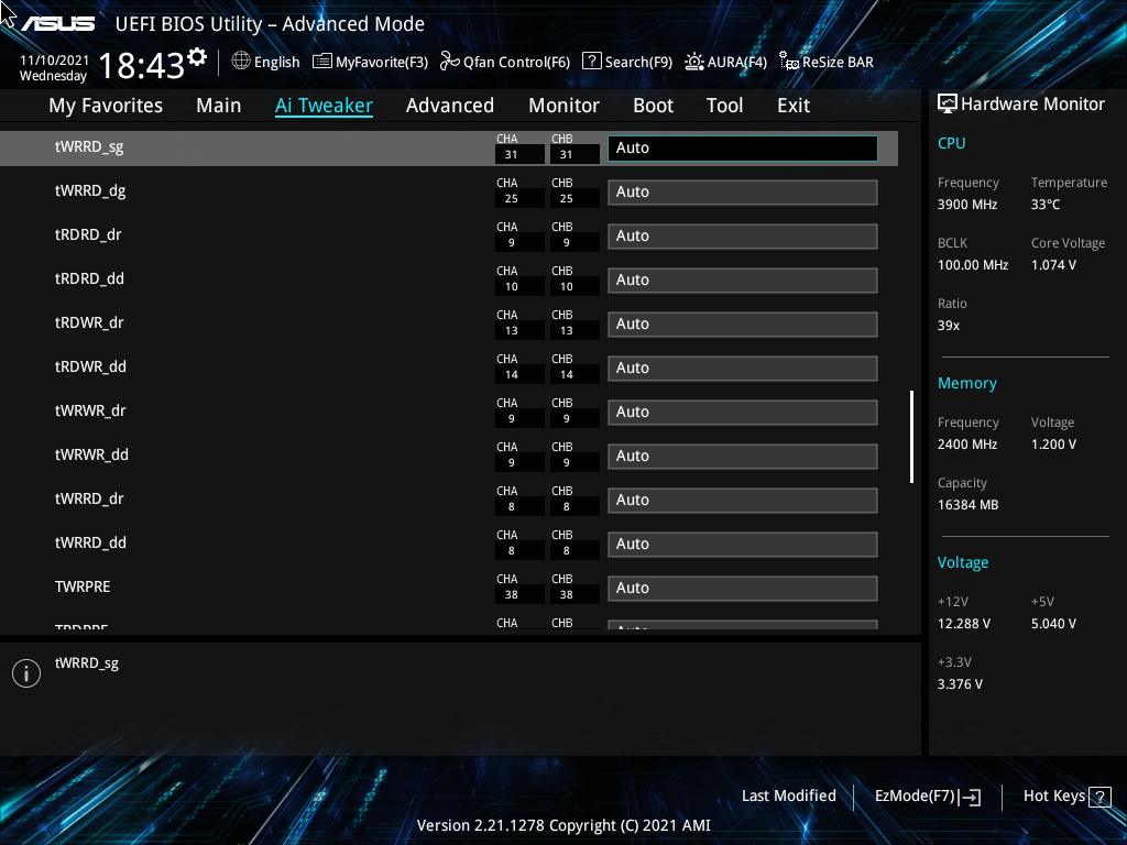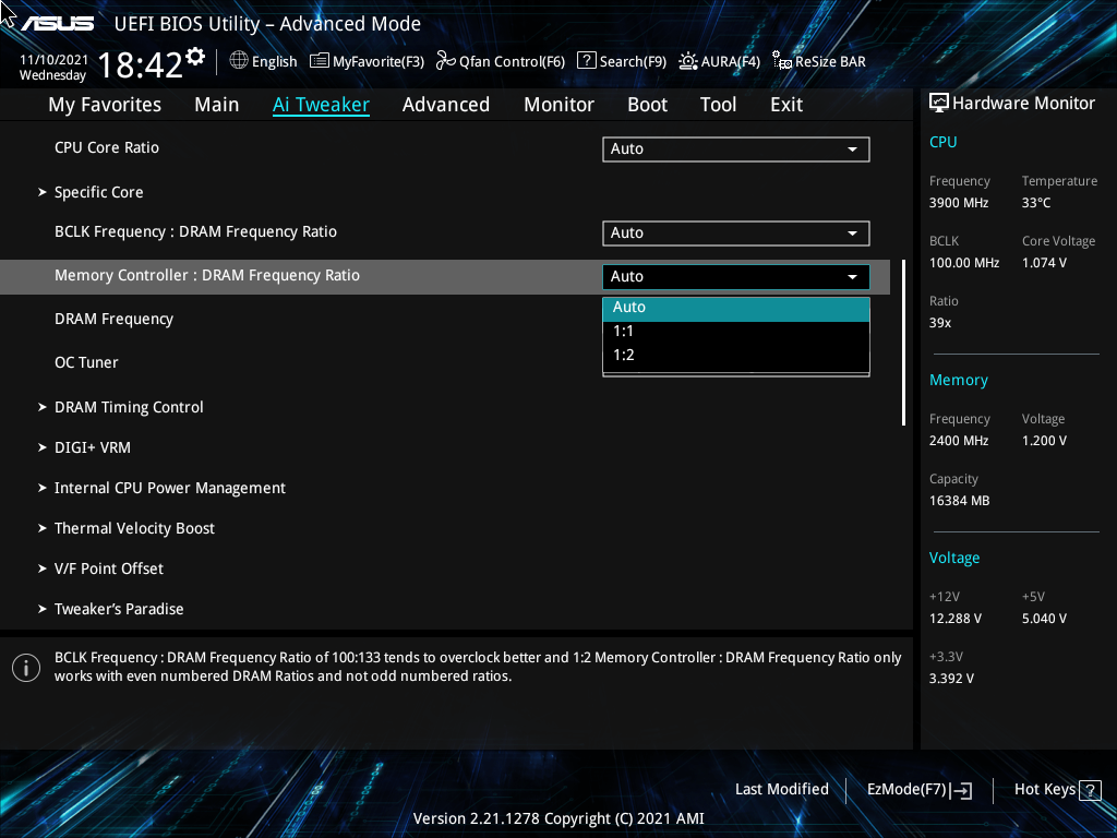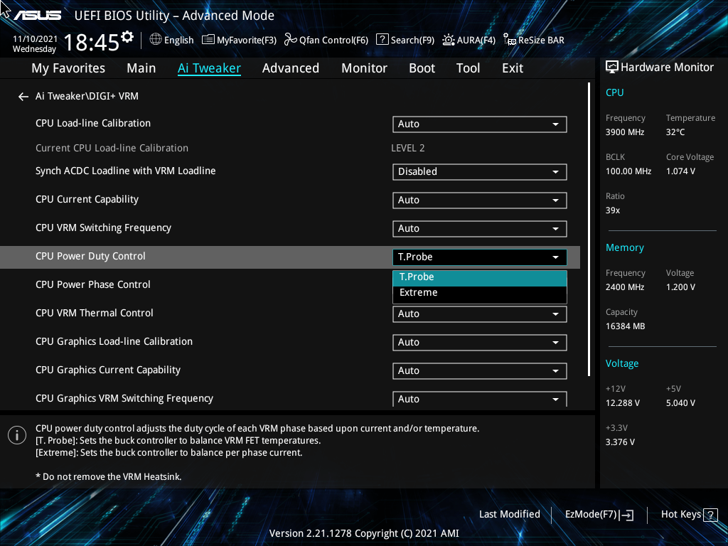 Раздел Ai Tweaker наполнен ровно так же, как у более статусной TUF Gaming Z590-Plus WiFi, то есть ни о каких упрощениях искусственного характера тут нет и речи. Вместе с тем, наблюдение за уровнями SA и IO 2 Voltage всё так же отсутствует.