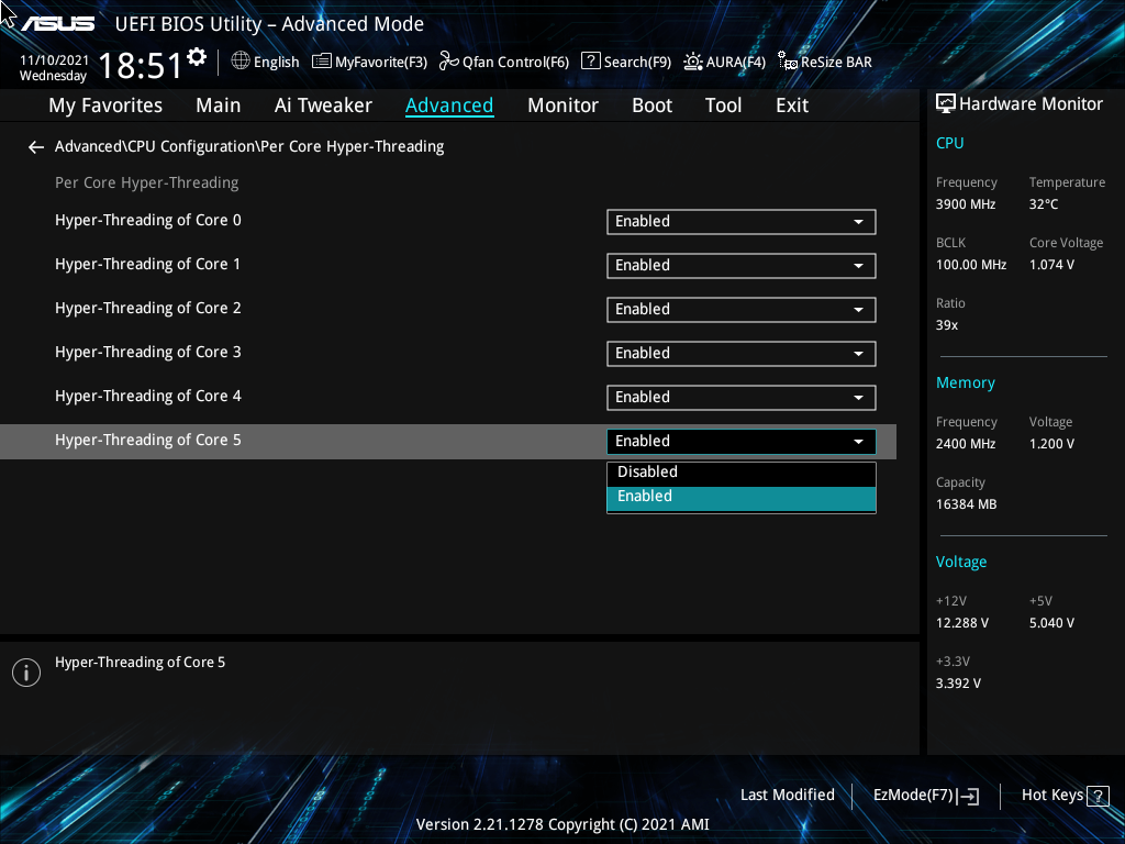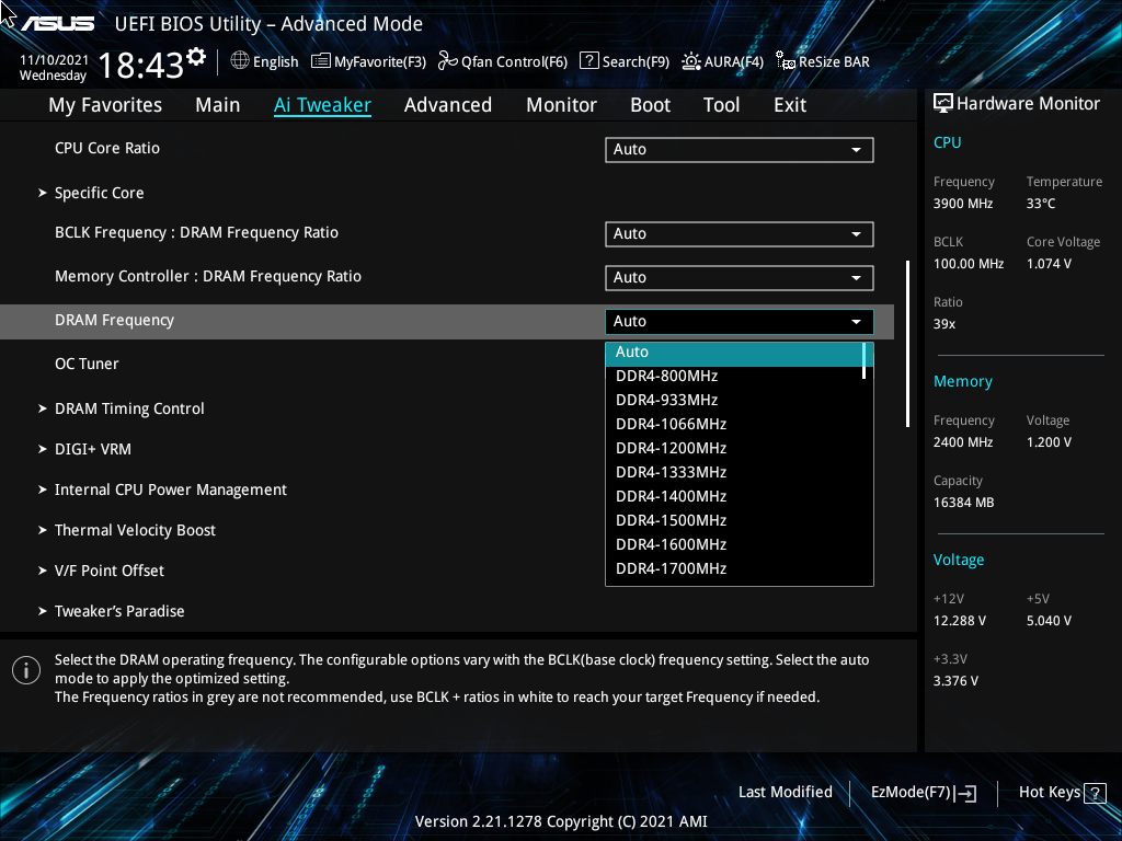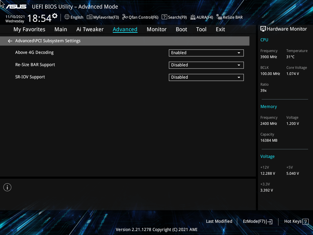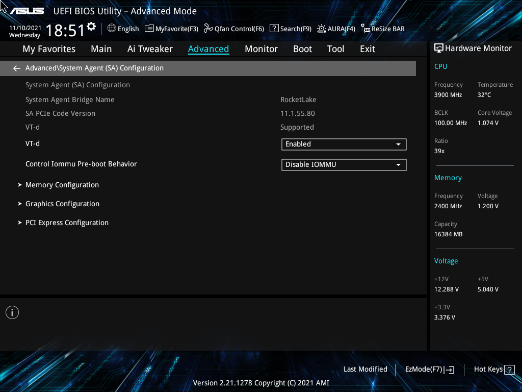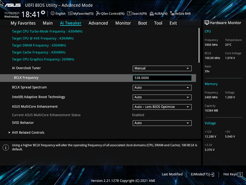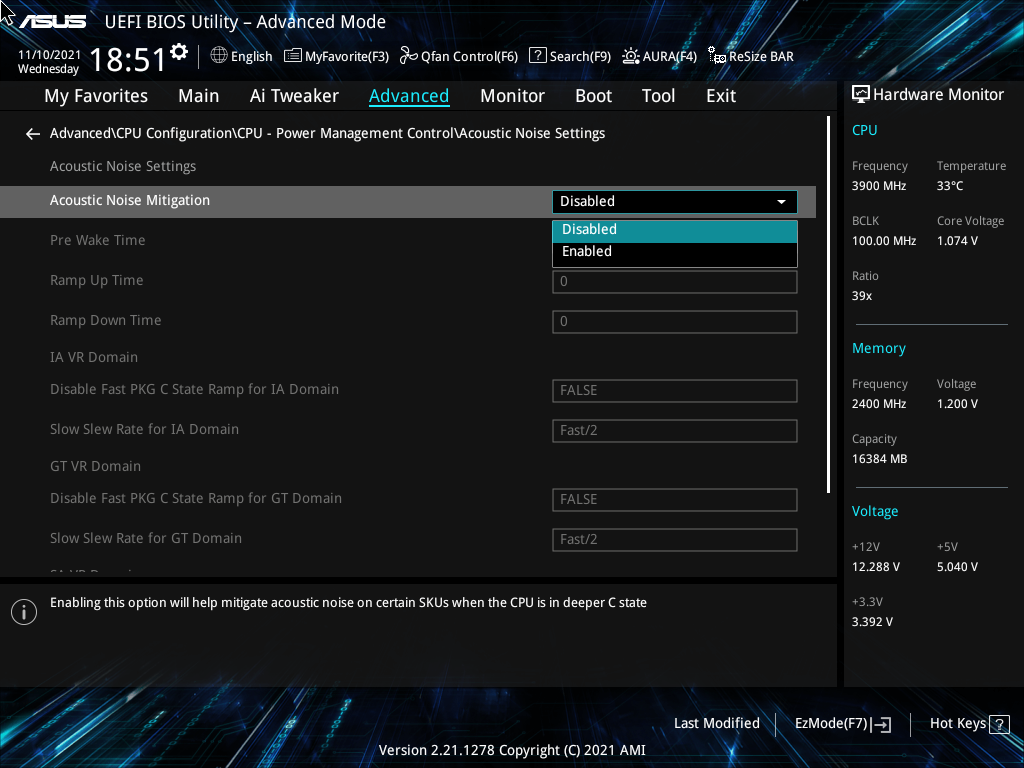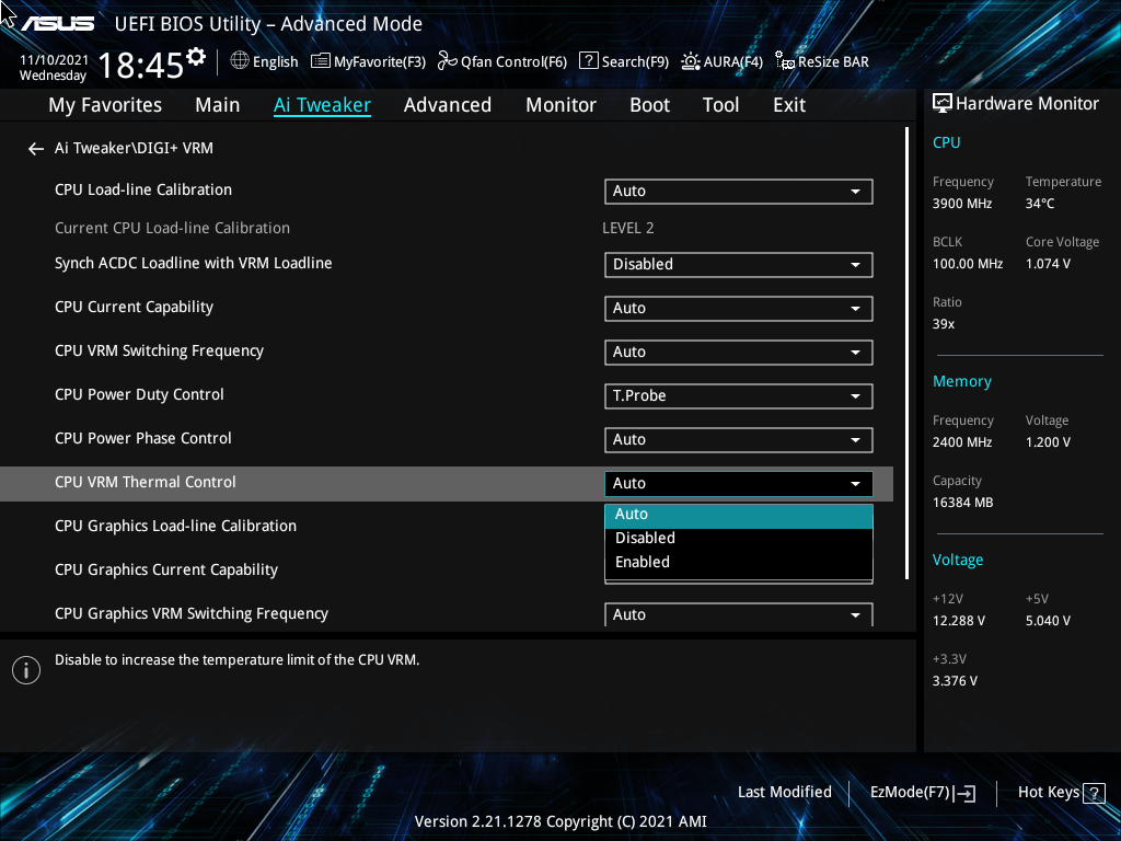 Раздел Ai Tweaker наполнен ровно так же, как у более статусной TUF Gaming Z590-Plus WiFi, то есть ни о каких упрощениях искусственного характера тут нет и речи. Вместе с тем, наблюдение за уровнями SA и IO 2 Voltage всё так же отсутствует.