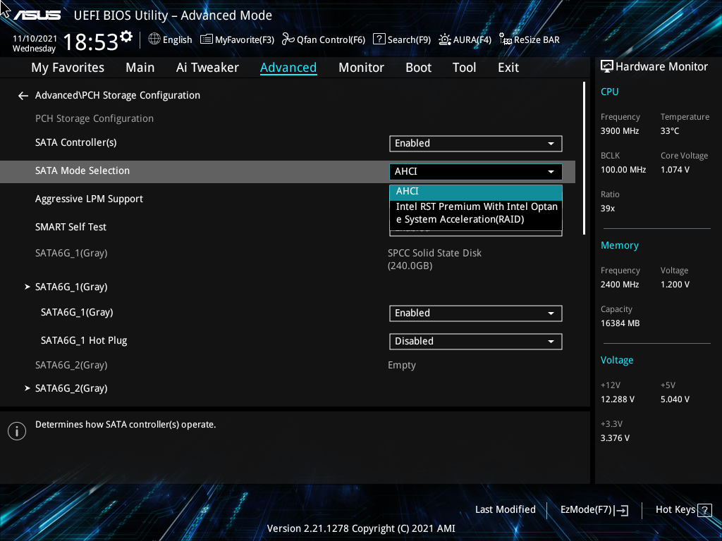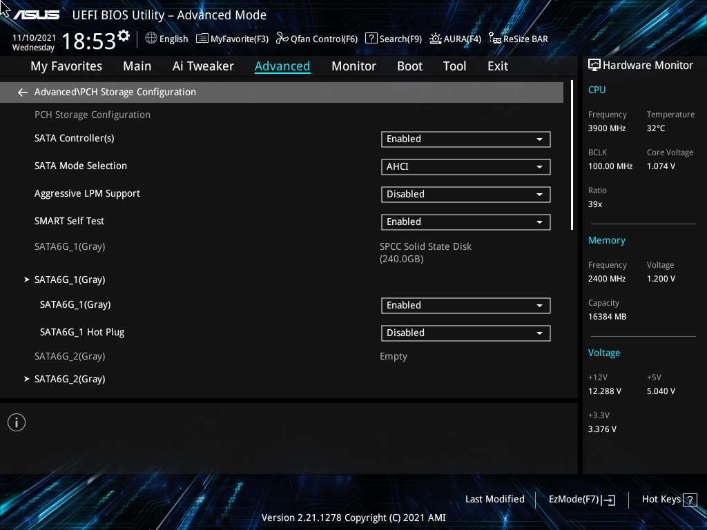 - накопитель: Silicon Power Slim S55 (240 ГБ, SATA 6 Гбит/с, AHCI mode);