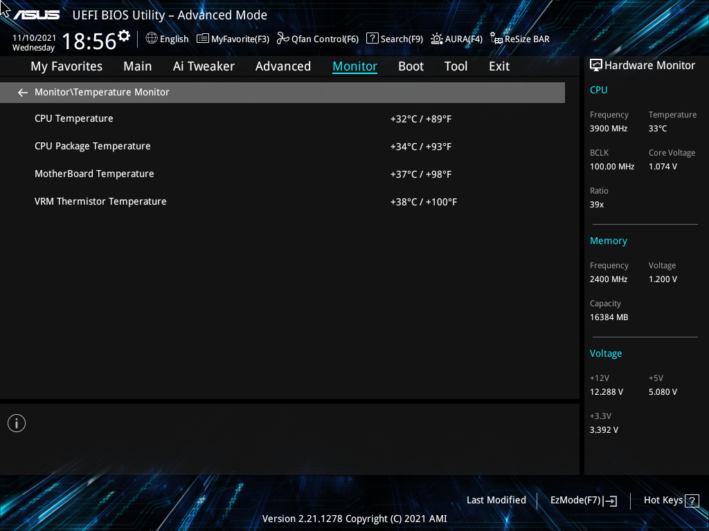 Наследственность продолжилась и в сфере контроля за температурами, а точнее радует наличием датчик VRM. Отчего-то убрали сведения про PCH, но сторонние утилиты способны отобразить и их.