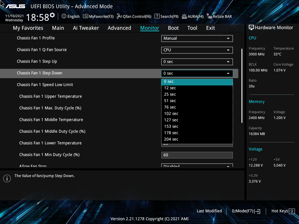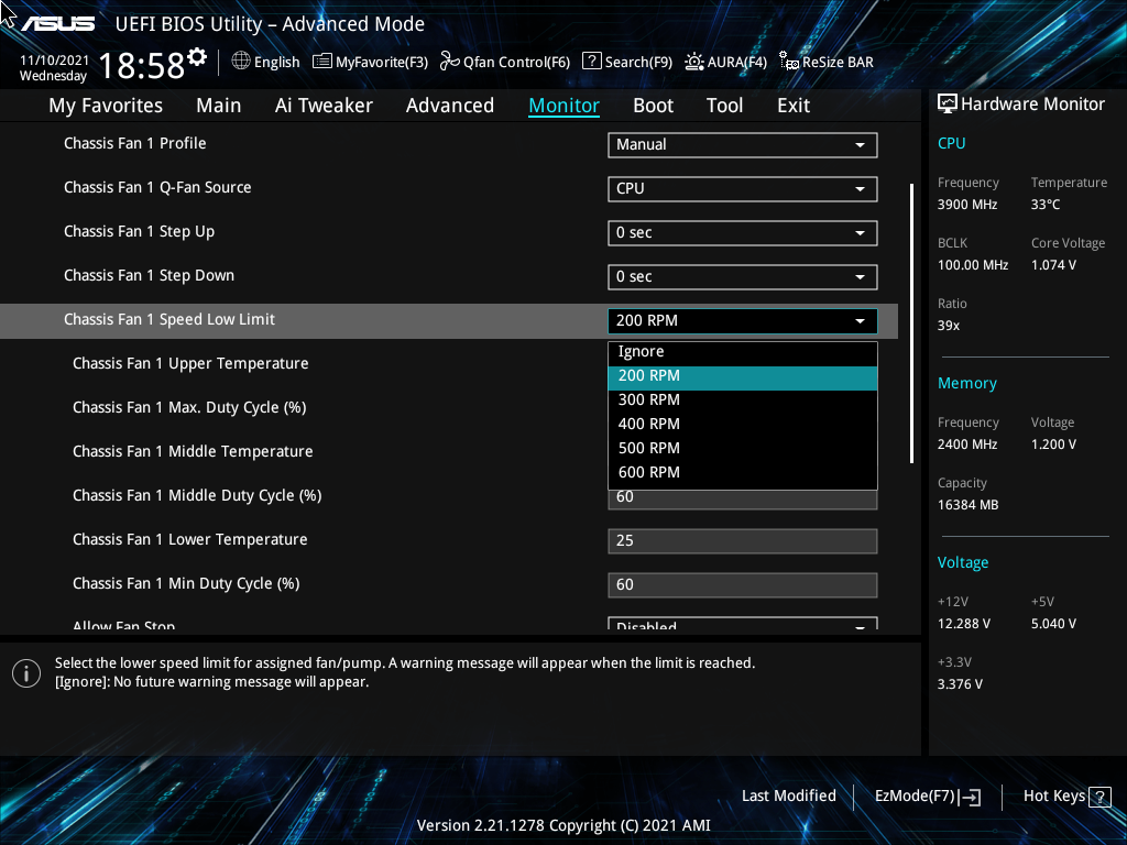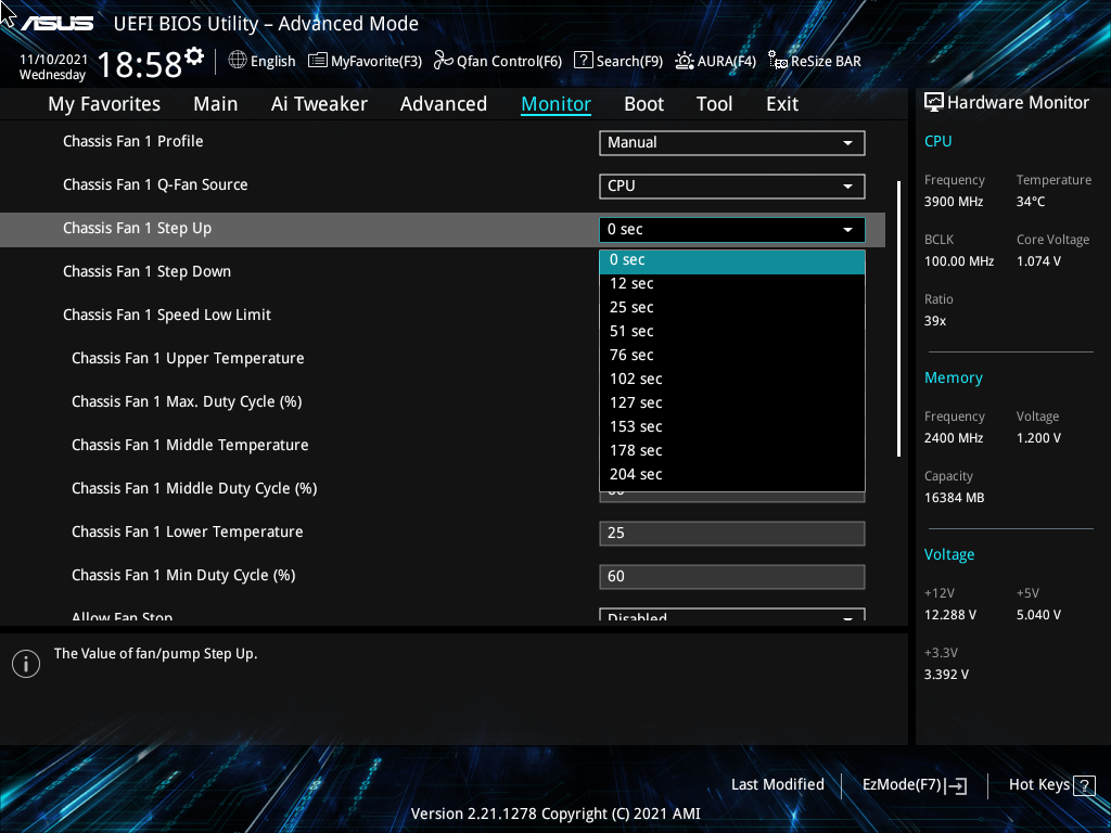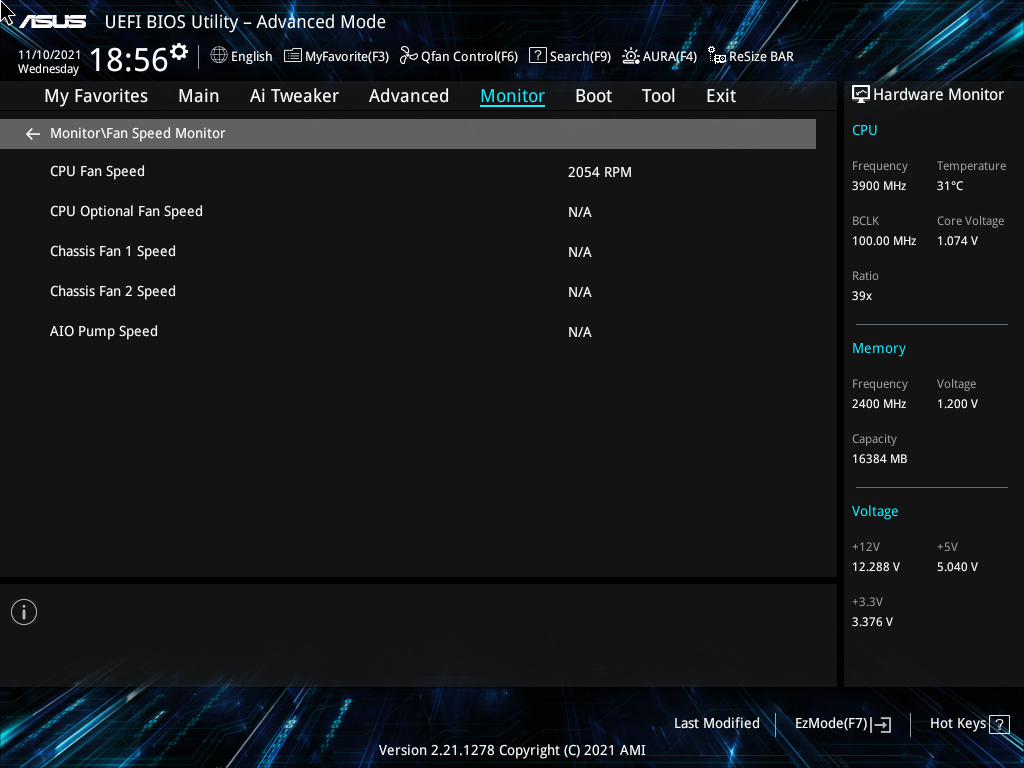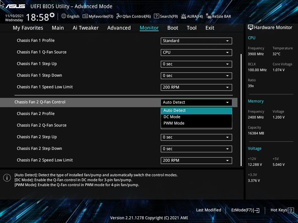 Базовая наладка происходит из простого режима Ez Mode, где доступны рядовые операции вроде установки времени, активации XMP и выбора загрузочного устройства. Уже здесь можно увидеть наличие независимых алгоритмов управления вентиляторами в числе четырёх штук.