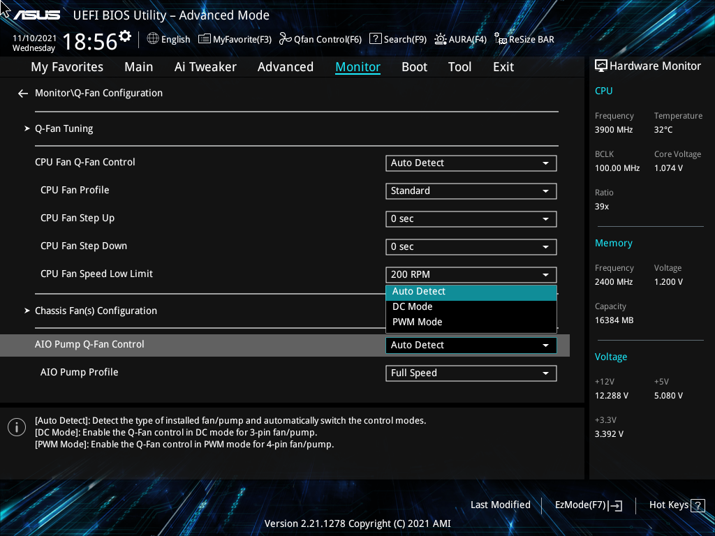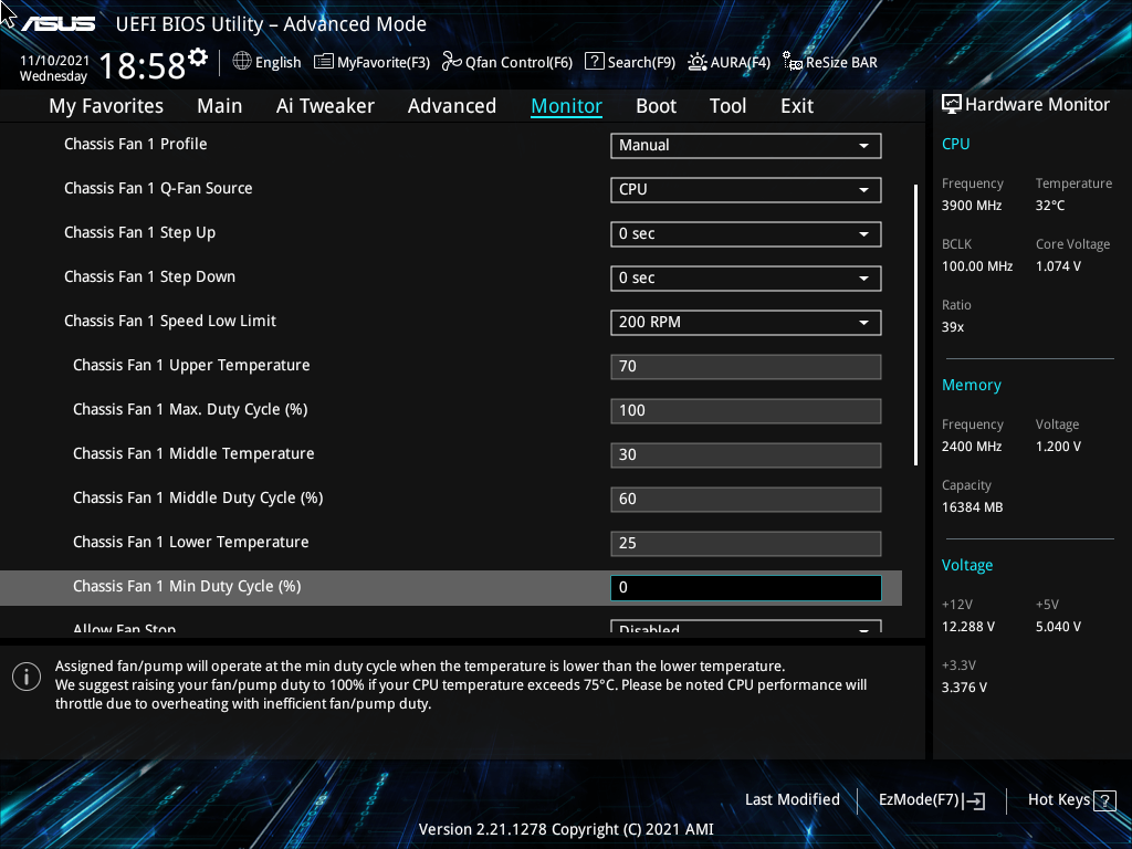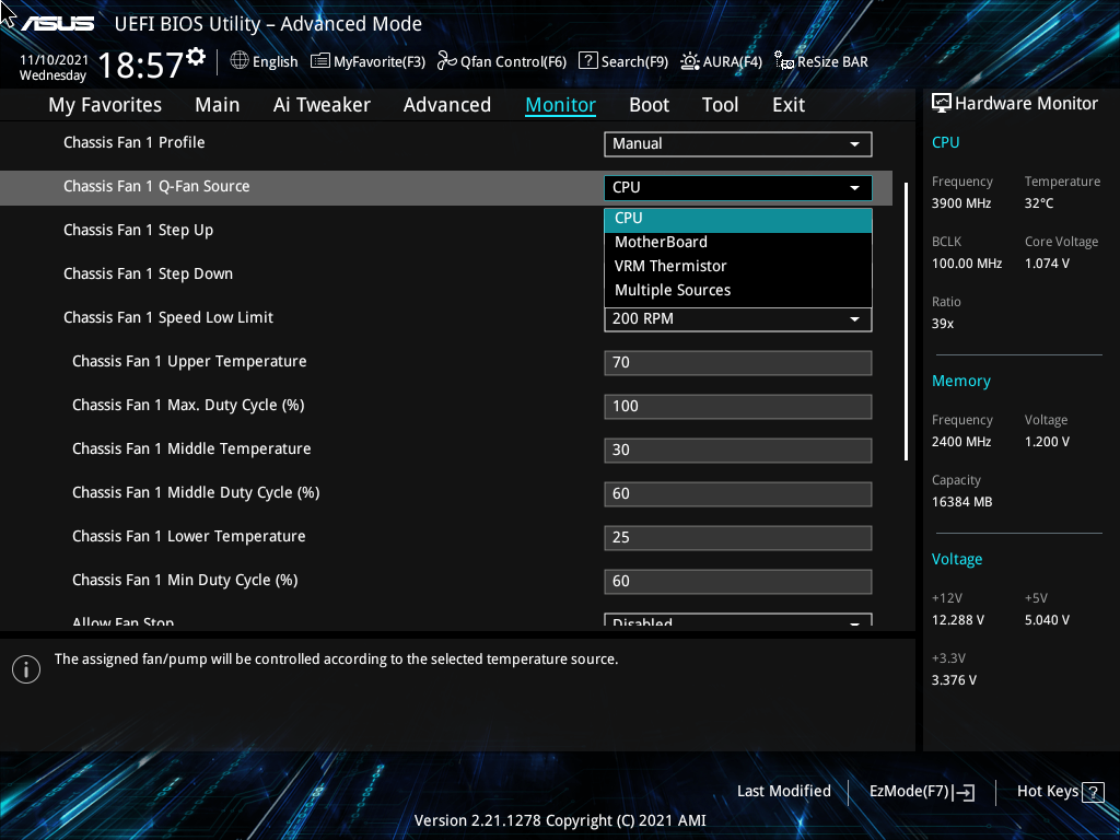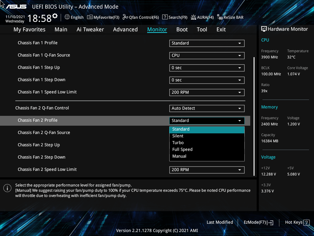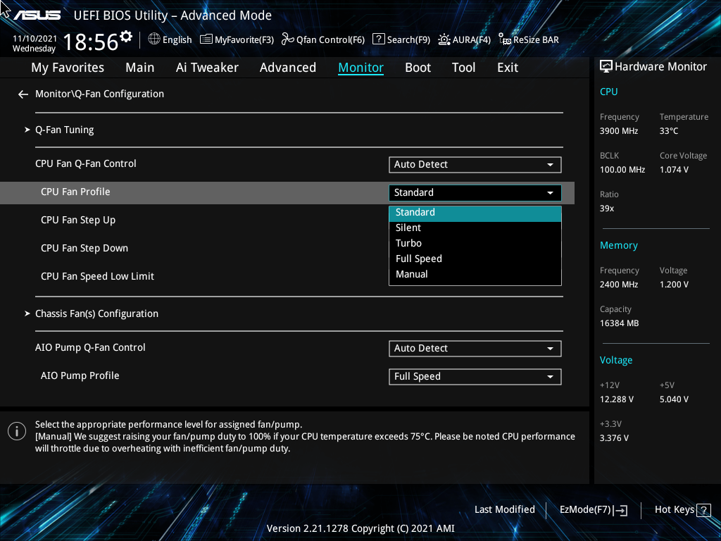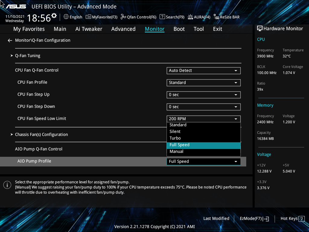Четыре независимых алгоритма могут быть привлечены для контроля работы пяти охладителей разных типов исполнения. Помимо готовых профилей работы, сформировать можно и собственный. Сразу, без калибровки устройств, будет доступен вариант с нулём процентов, что прежде было проблемой для плат от ASUS.