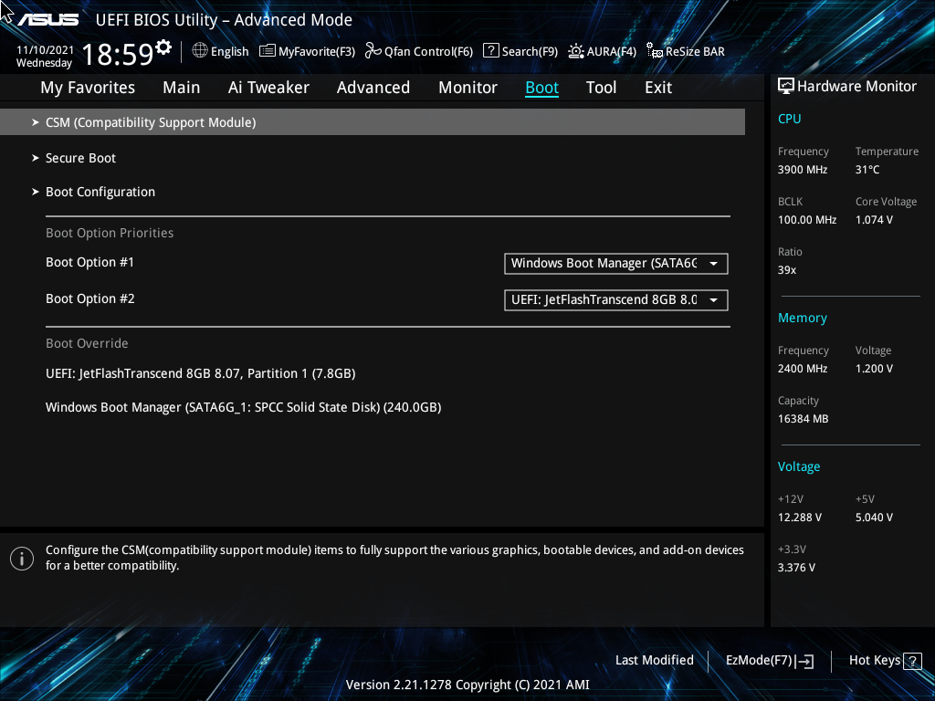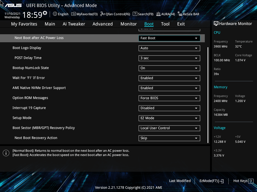 Опрос оборудования достаточно быстр уже с начальными настройками. При некоторых видах разгона были склонности к «двойному старту», в особенности, при модификации отметки базовой частоты. Вместе с iGPU невозможен вариант работы системы при активном CSM.