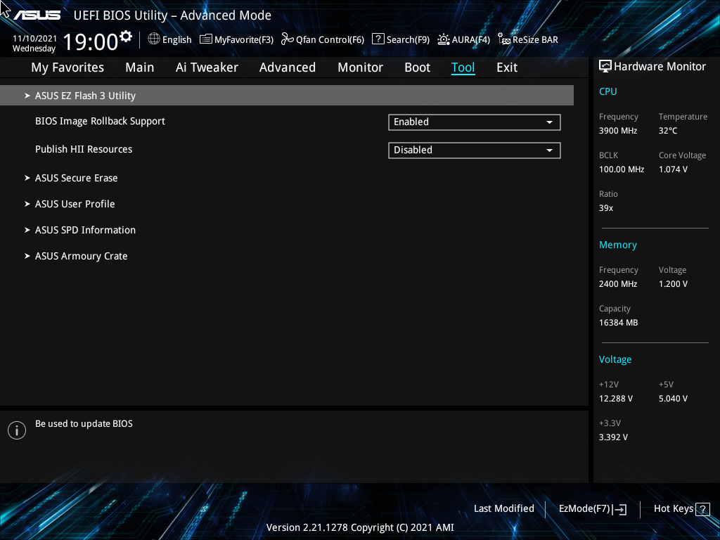 Используя встроенный механизм Ez Flash, интегрировалась самая актуальная сборка UEFI. ME обновляется из Windows 10 при содействии фирменной утилиты.