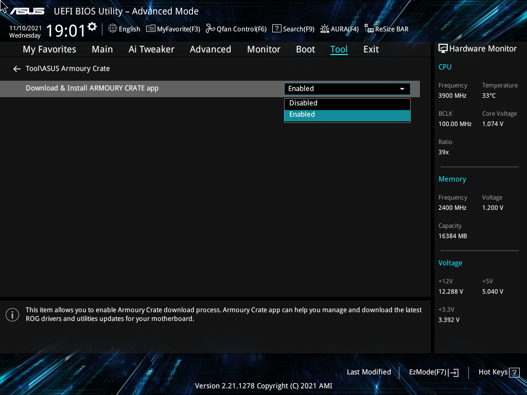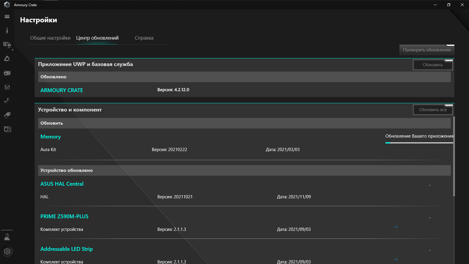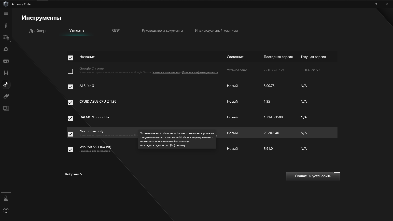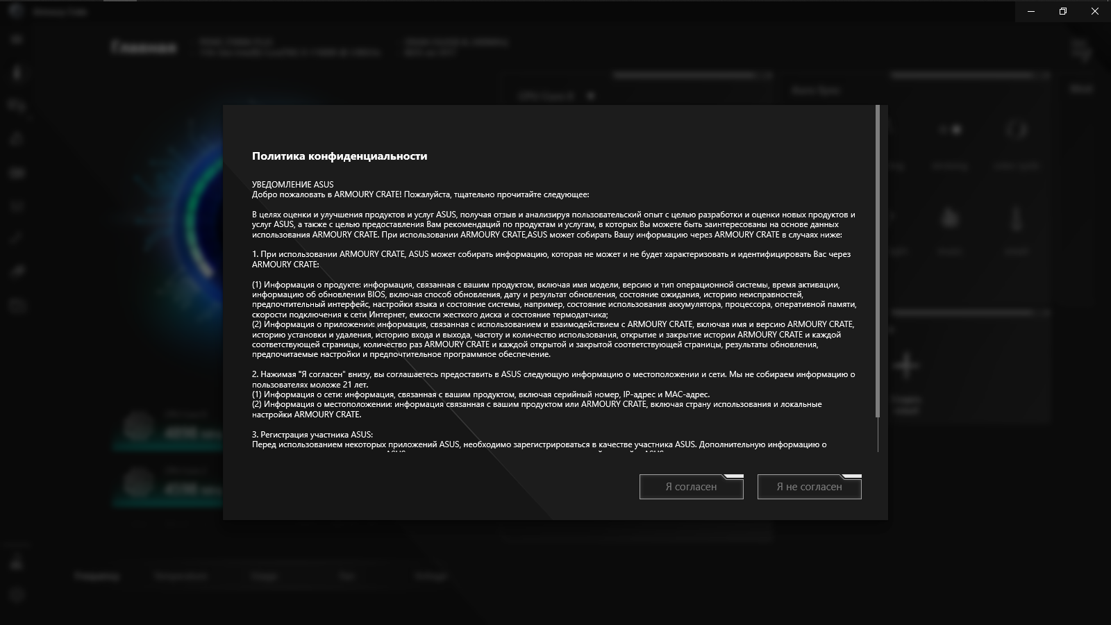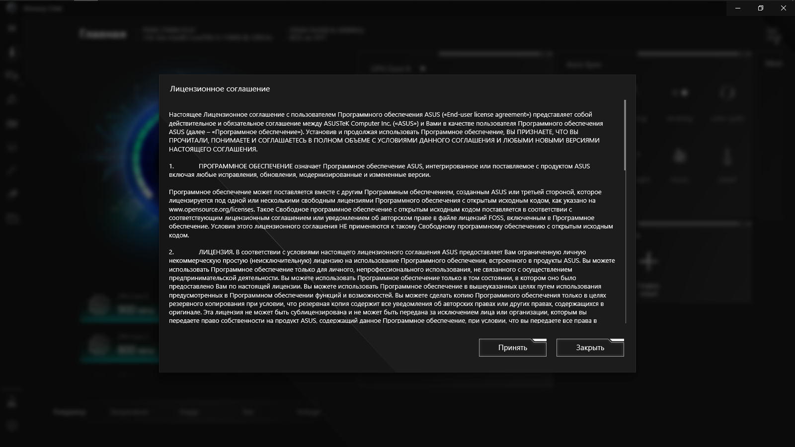 Armoury Crate, лишь только увидит Интернет, тут же предложит выполнить установку, логично, что это будет происходить после первой же загрузки Рабочего Стола Windows.