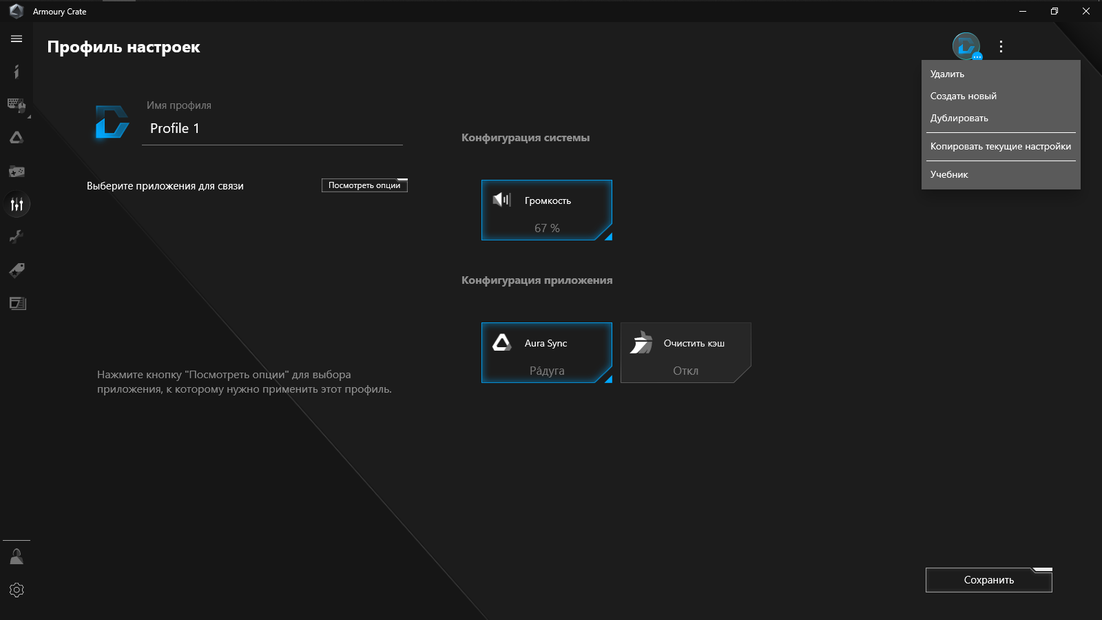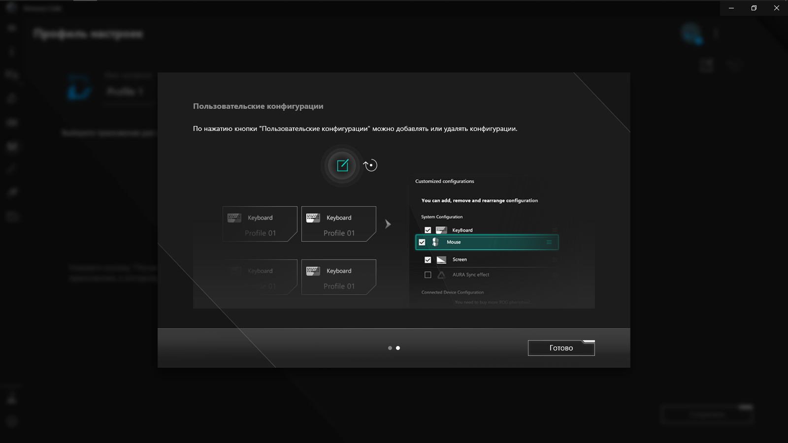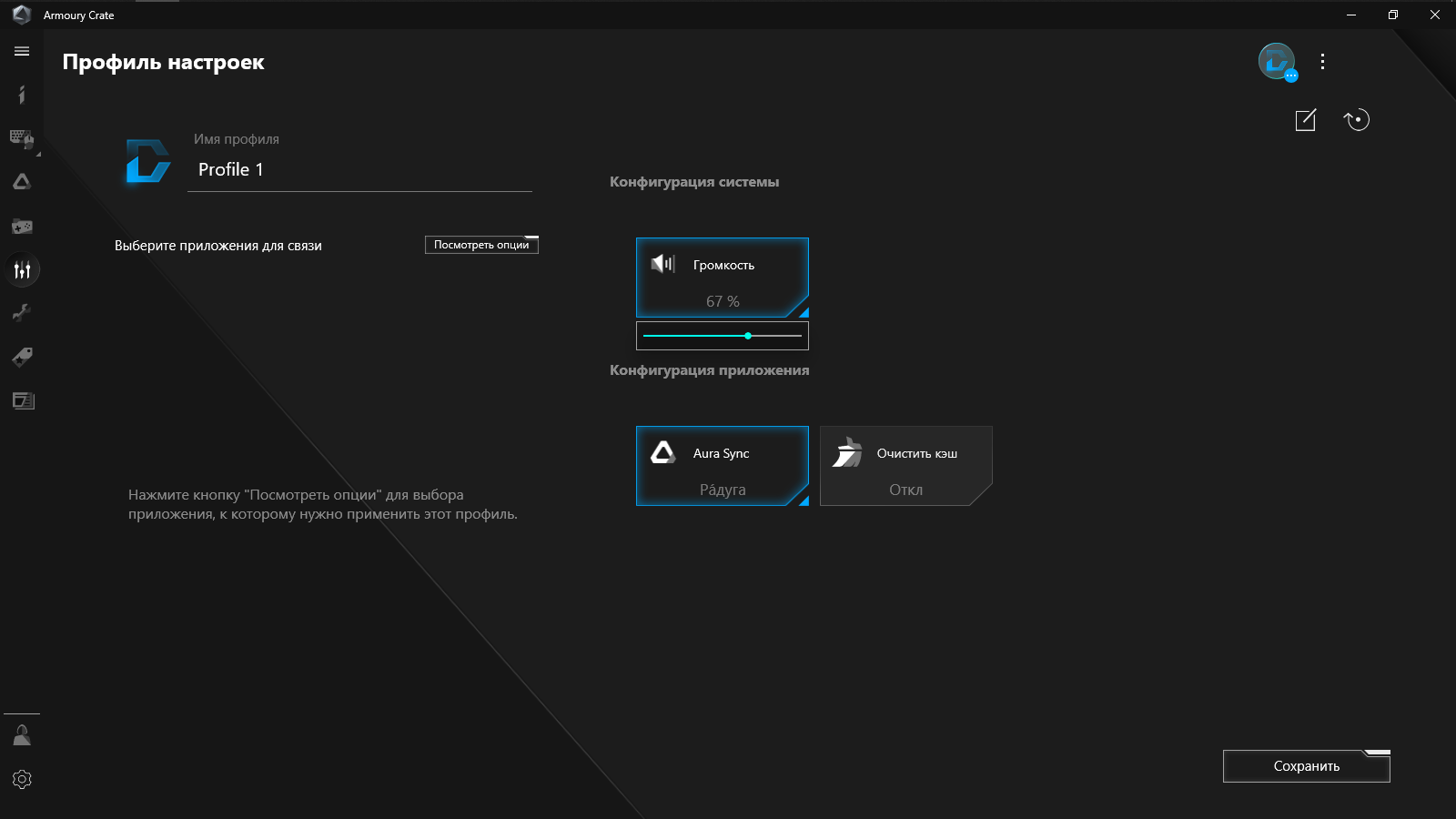 К добавленным играм можно подвязать профили с настройками для их автоматического форсажа при запуске заданных продуктов. Работа с профилями сконцентрирована на отдельной странице. Подразумевается наладка различной периферии от ASUS, если та будет обнаружена в системе.