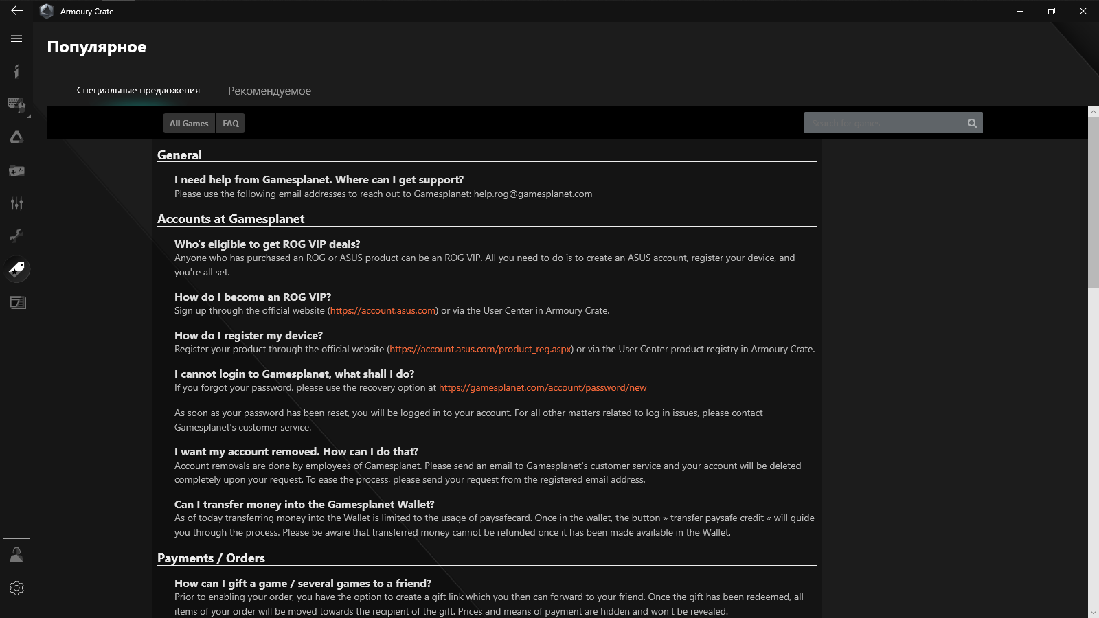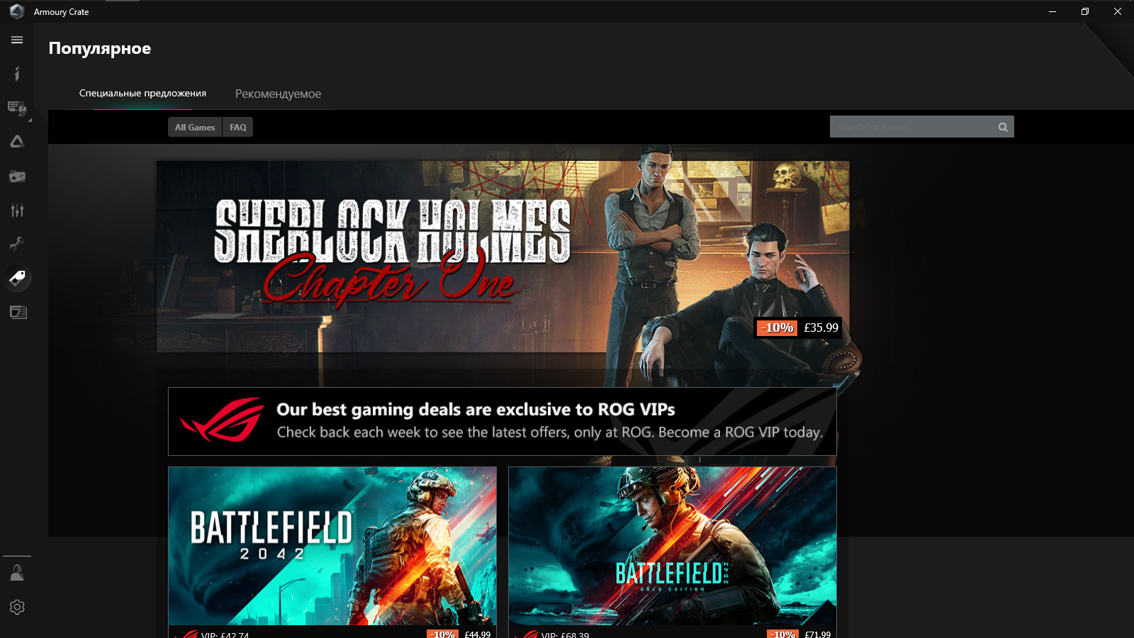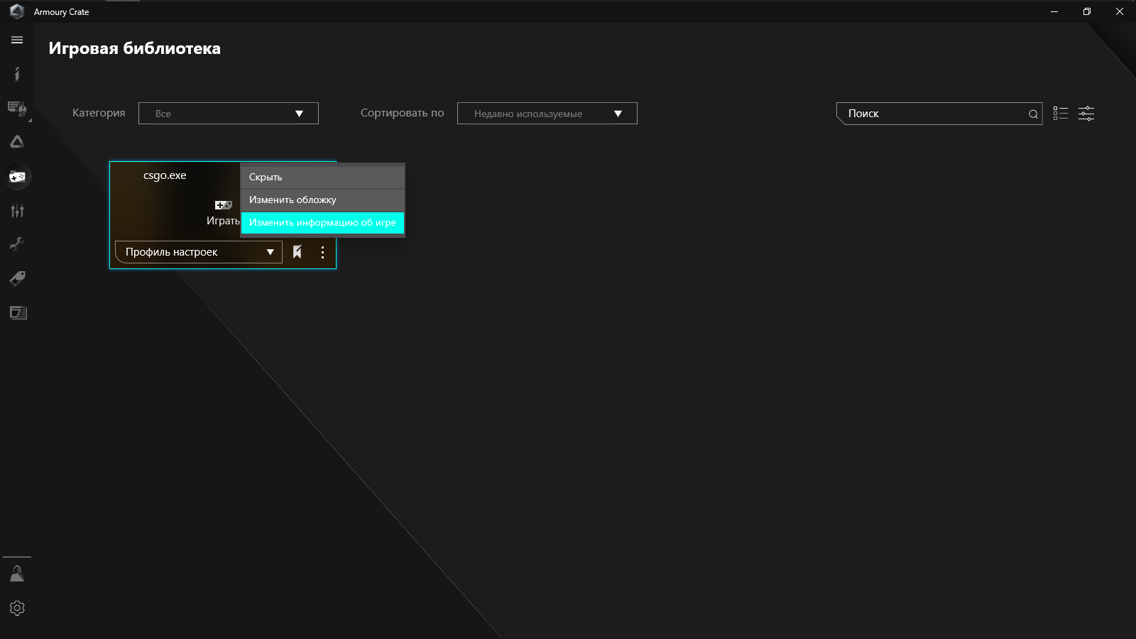 К добавленным играм можно подвязать профили с настройками для их автоматического форсажа при запуске заданных продуктов. Работа с профилями сконцентрирована на отдельной странице. Подразумевается наладка различной периферии от ASUS, если та будет обнаружена в системе.