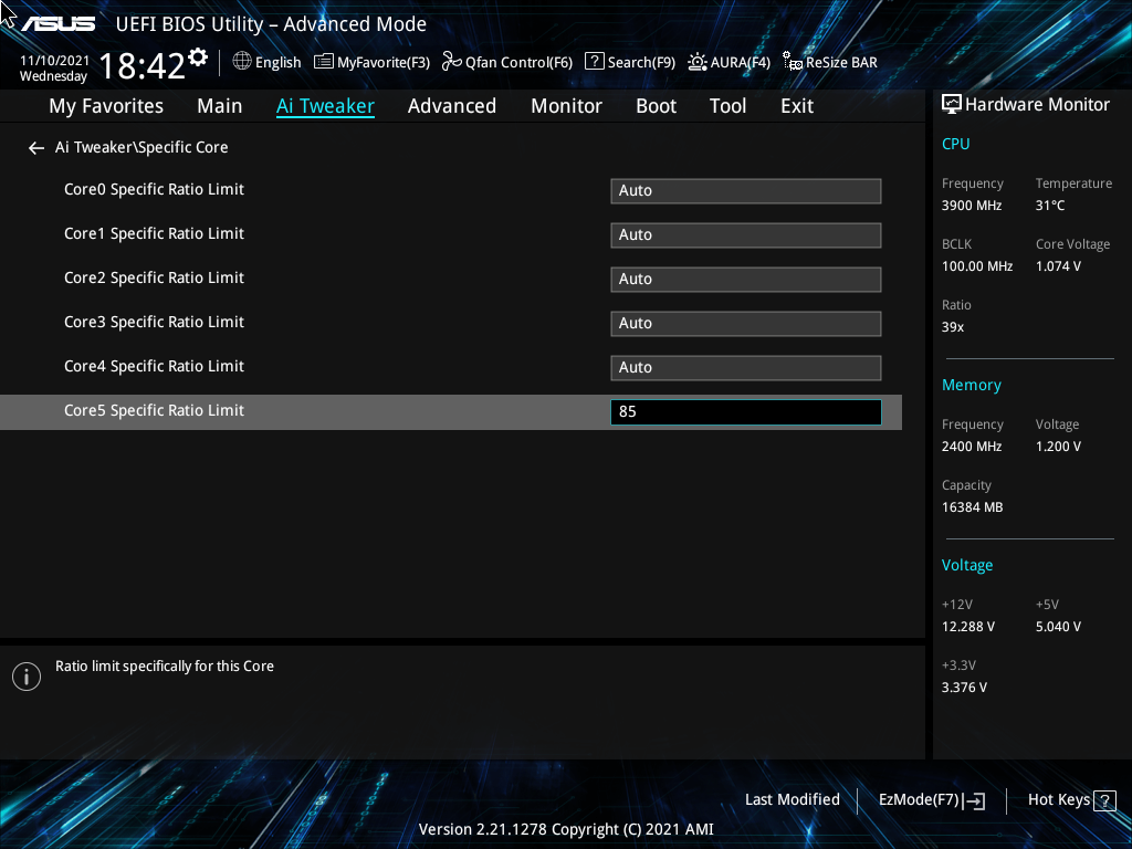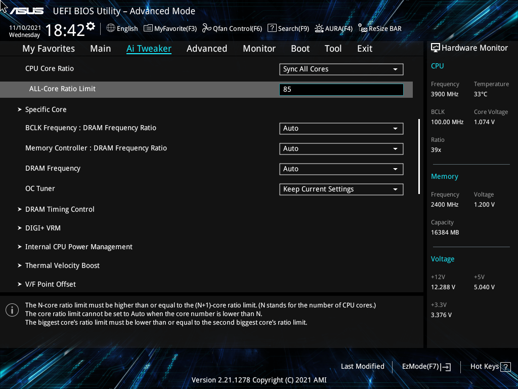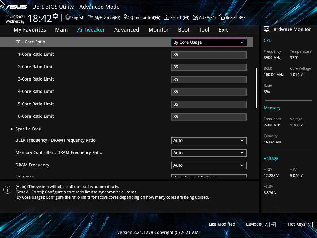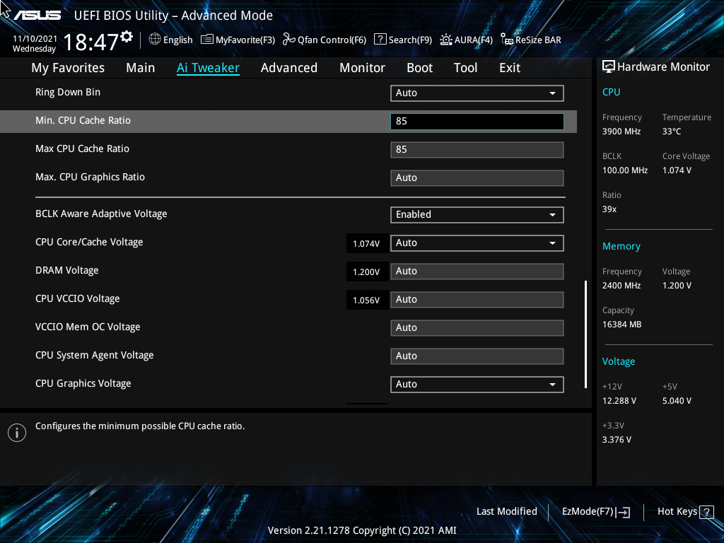 | CPU Cache Ratio (Multiplier) | 8–85 | 1 |