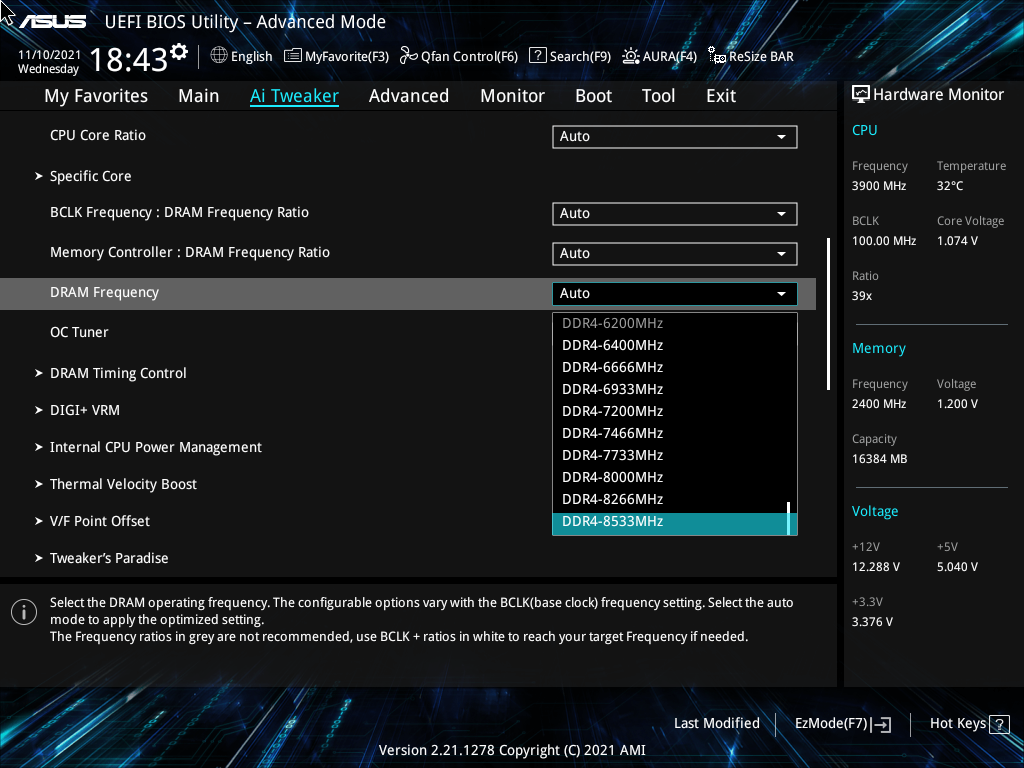| DRAM Frequency (МГц) | 800–6400 800–8533 |