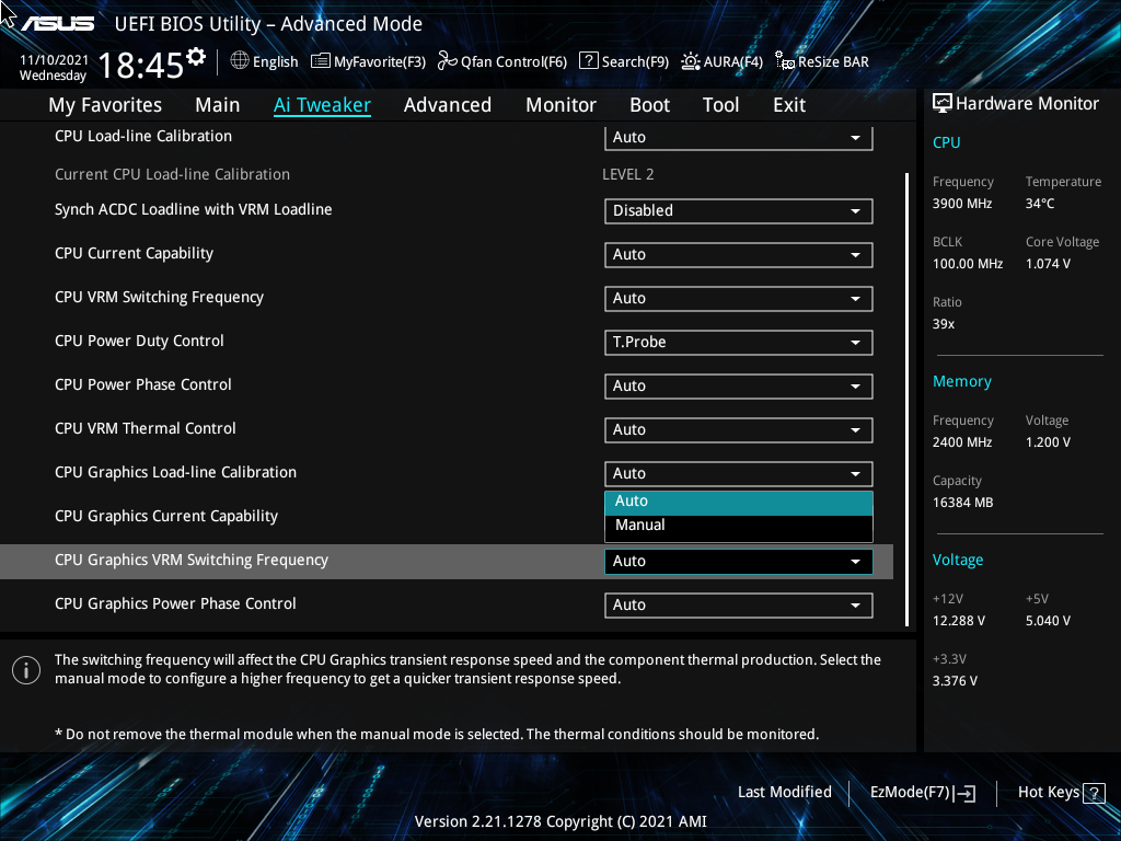 | CPU Graphics Load-line Calibration | Auto/Level1…7 | 1 |