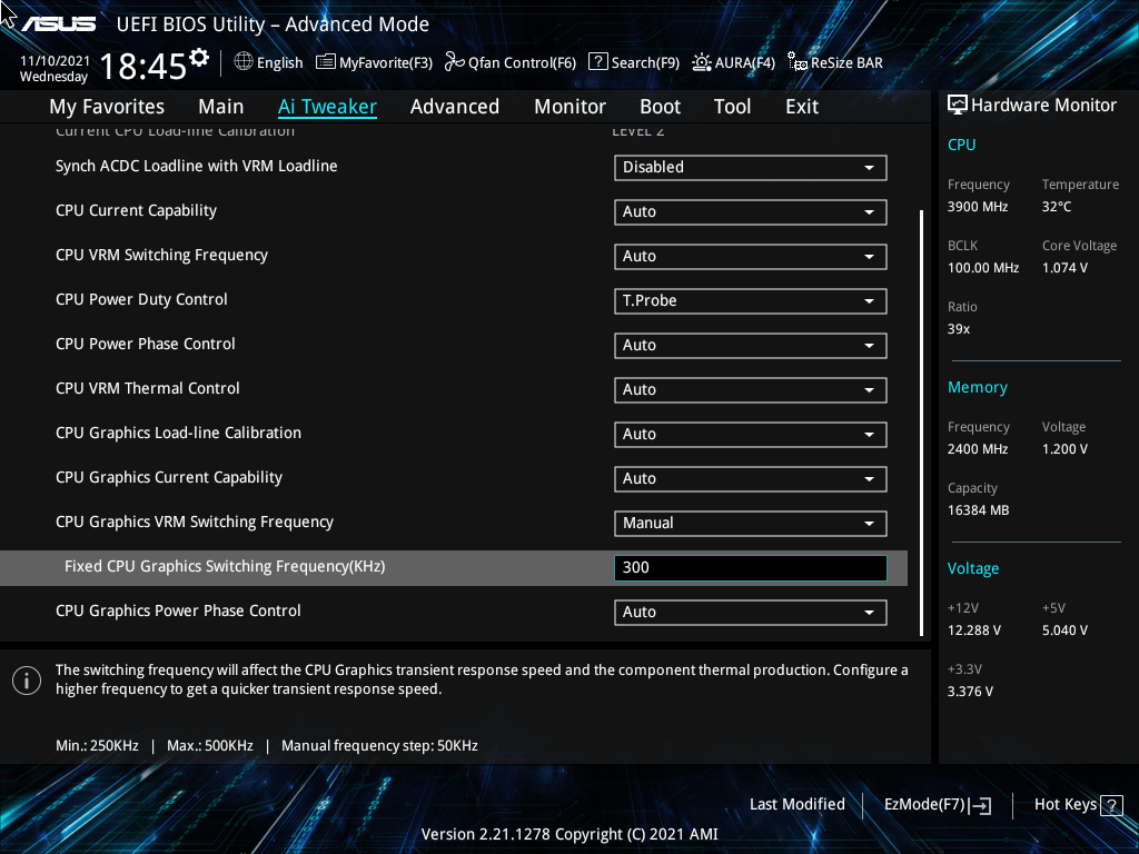 | CPU Graphics Current Capability (%) | Auto/100…140 | 10 |