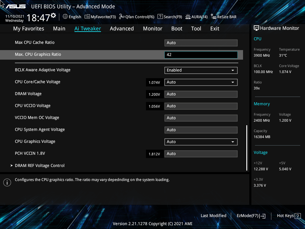 | Max. CPU Graphics Ratio (Multiplier) | 1(by CPU)–42 | 1 |