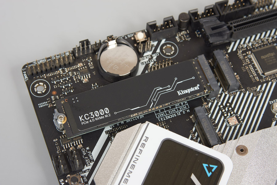 А вот количество разъемов M.2 теперь увеличили до четырех, все с поддержкой PCI Express 4.0, при чем, три из них оснащены радиаторами с предустановленными термопрокладками. Подключенный к процессору интерфейс дополнен металлической пластиной для лучшего охлаждения накопителя с обратной стороны.
