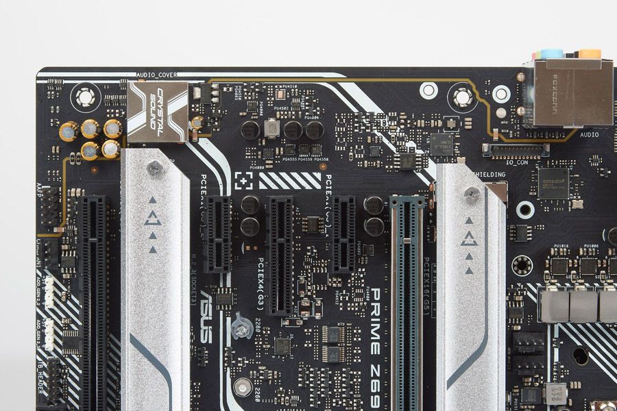 Звуковая подсистема реализована на базе кодека Realtek ALC S1220A, накрытого металлическим экраном, и отделена от остальной части платы изолирующим зазором.
