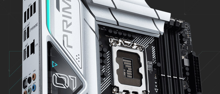 Внешне плата выглядит, как и положено представителю серии Prime, спокойно и неагрессивно: черный текстолит дополняют серебристые элементы охлаждения и декоративные белые вставки. Добавилось больше плавных обводов, чем было ранее. Prime Z690-A стандартного форм-фактора ATX с девятью точками крепления, которые после сборки системы не позволят плате провисать со стороны разъемов.