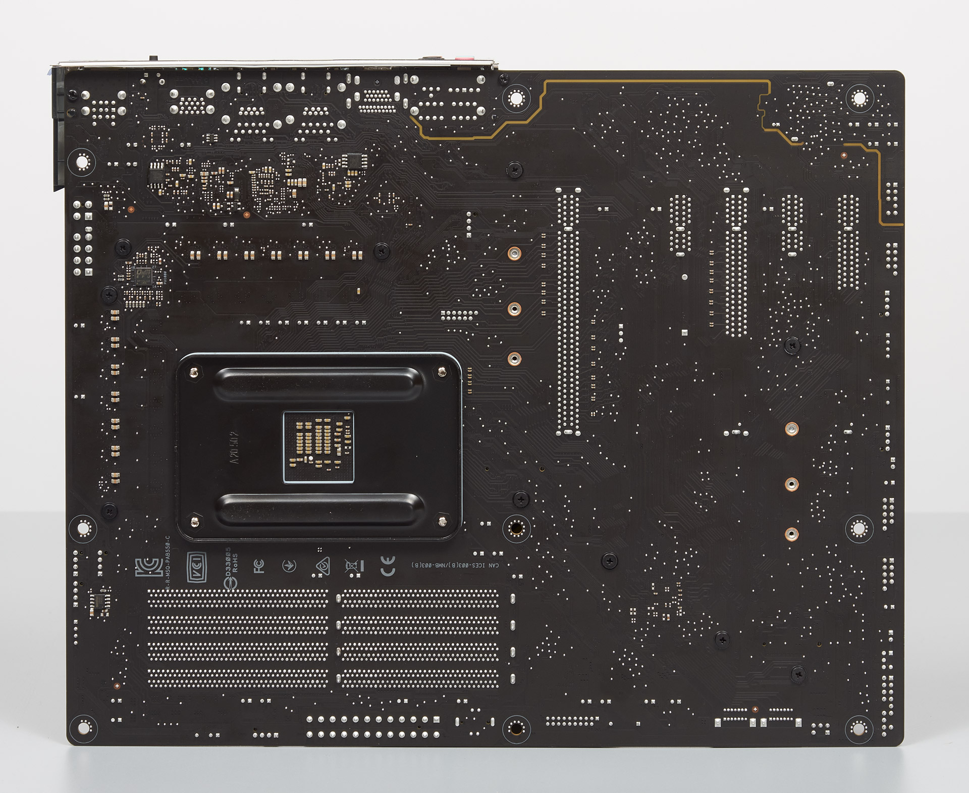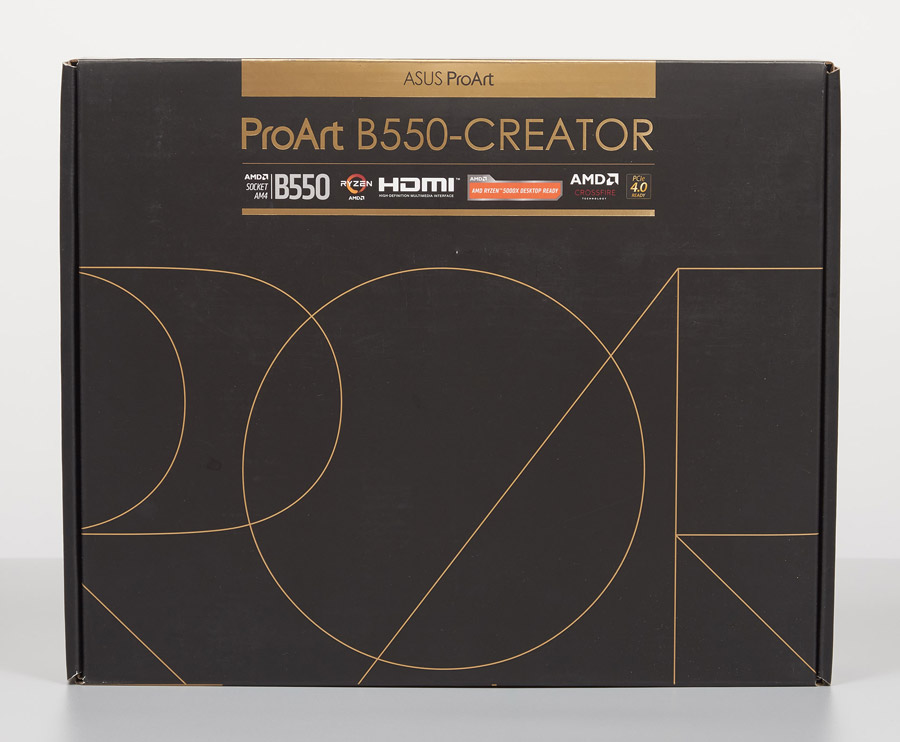 Размеры коробки и внутреннее содержимое ничем не выдаёт в себе некий особый продукт. Броские ярлыки спереди скорее отображают возможности чипсета B550, чем самого изделия.