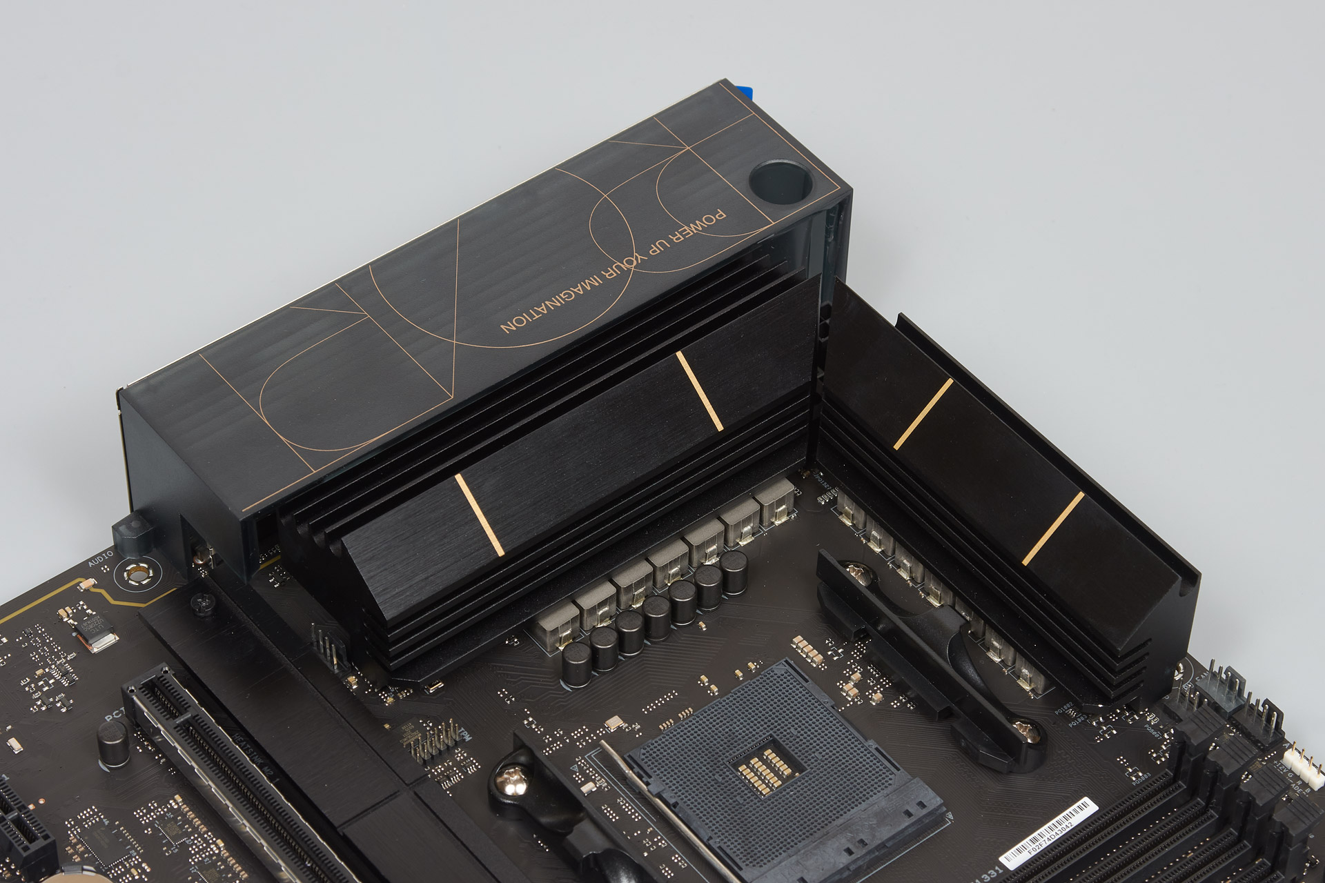 Как мы знаем, нрав кристалла AMD B550 весьма умерен, и потому уместность пластиковой декоративной накладки поверх ребристого радиатора для хаба оставили на усмотрение владельца, позволив демонтаж посредством простой крестовой отвёртки, но сразу скажу, что всё можно оставлять как есть и переживать о температуре тут не придётся.