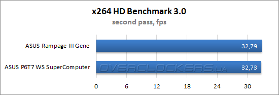 Тест конвертации видео x264 HD Benchmark завершился с микроскопическим перевесом полноформатной платы. Междоусобица, замеченная в начальном тесте, постепенно свелась к братанию.