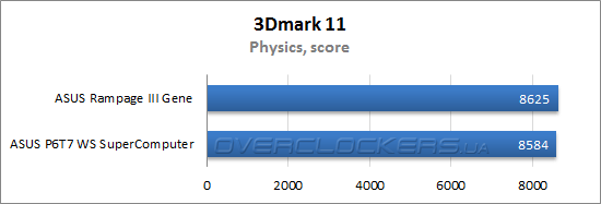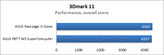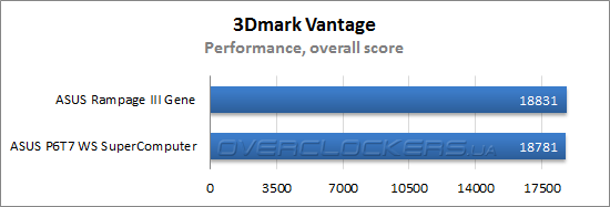 В 3DMark образца 2008 года ASUS Rampage III Gene и P6T7 WS SuperComputer одинаково успешны: первая в графическом тесте (18043 против 17962 «попугаев»), вторая — в процессорном.