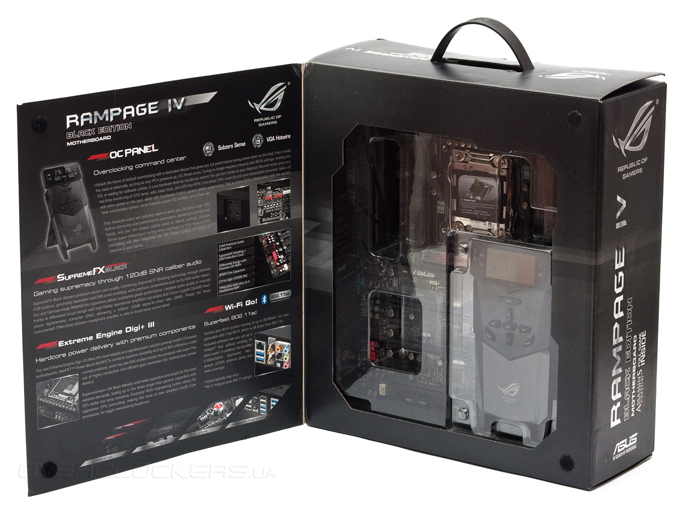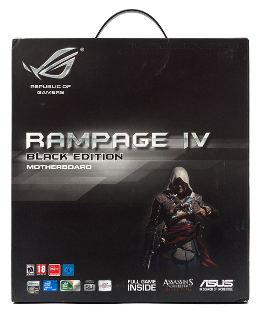 В отличие от остальных продуктов серии Republic of Gamers рассматриваемая плата поставляется в коробке черного цвета, что еще раз подчеркивает особенный статус Rampage IV Black Edition среди остальных «игровых» решений.