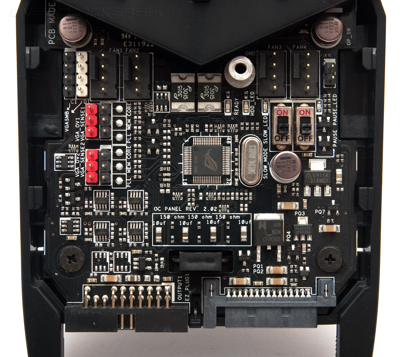 Помимо снятия показаний и настройки параметров пульт позволяет еще подключить четыре вентилятора, фирменные видеокарты с поддержкой VGA Hotwire, активировать функцию Slow Mode, замедляющую процессор при старте системы, и Pause.