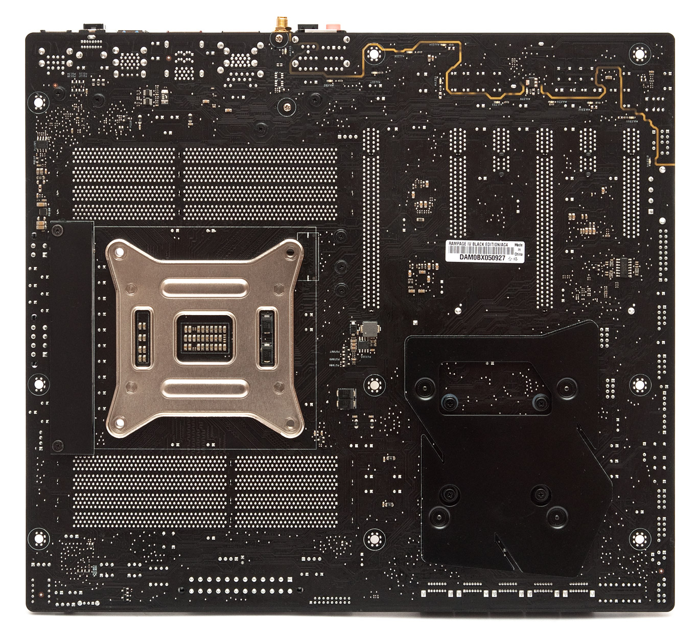 О дополнительной пластине X-Socket уже рассказывалось в обзоре Rampage IV Formula/Battlefield 3. Напомню, что она позволяет использовать системы охлаждения и стаканы для жидкого азота, рассчитанные на платформу Socket1366. Естественно, если они подойдут, так как новый сокет стал больше и доходит практически впритык к монтажным отверстиям.