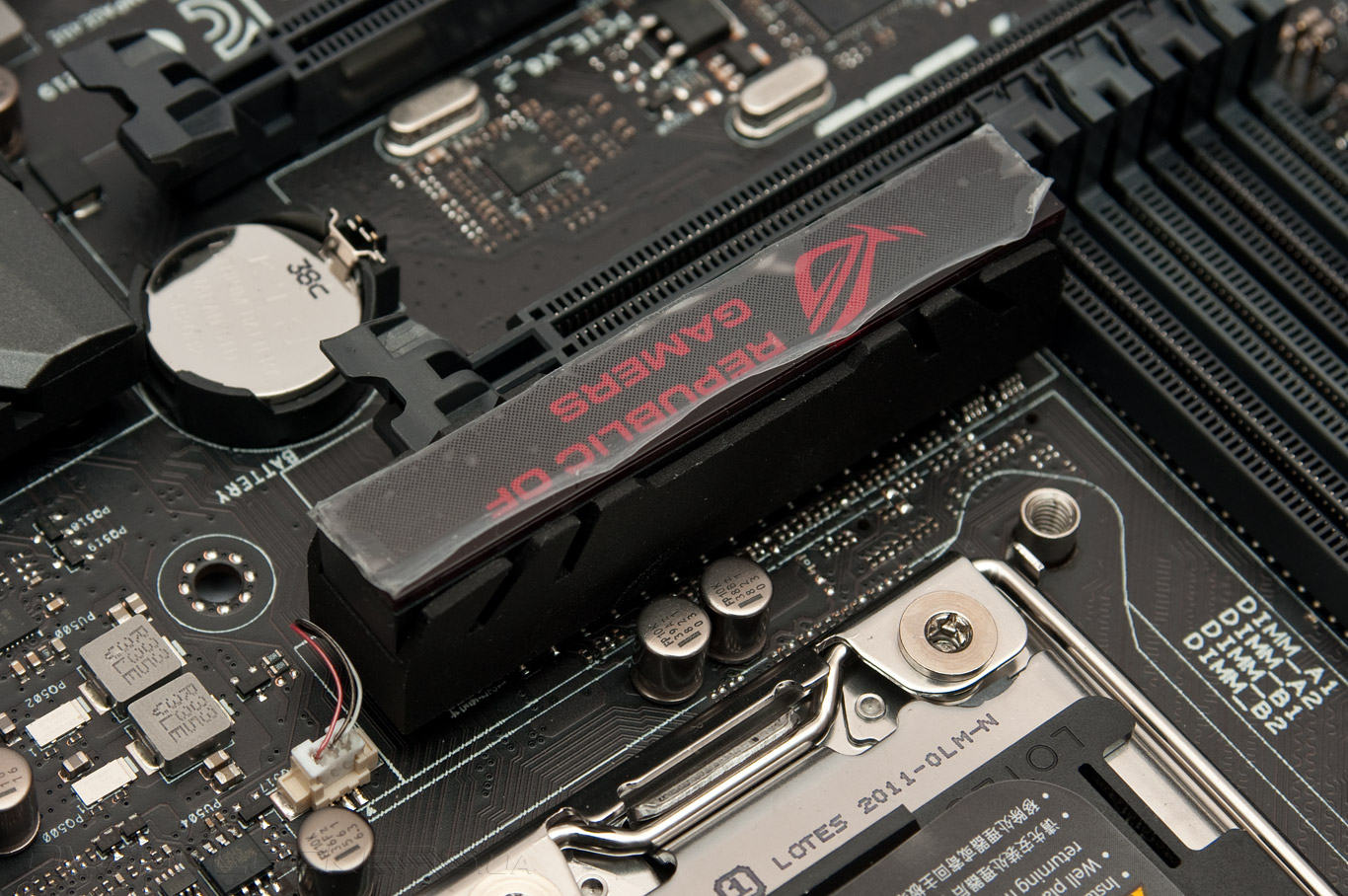 Еще один радиатор в охлаждении каких-либо элементов вообще не участвует и выполнят лишь декоративную роль, подсвечивая логотип ROG.