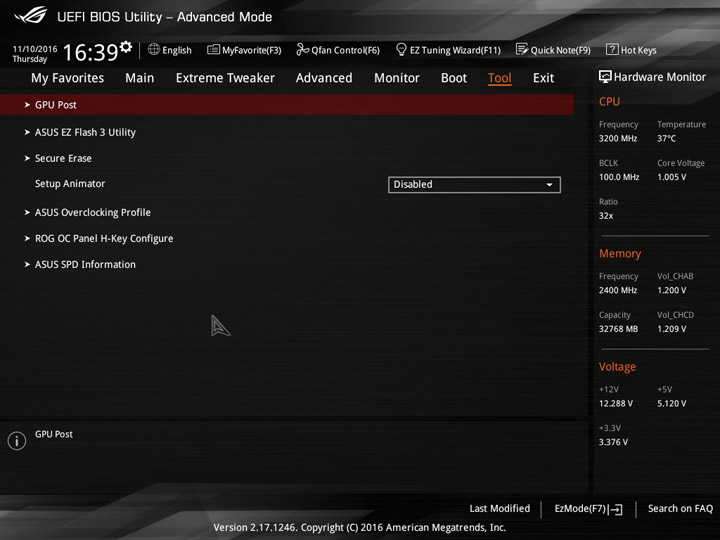 Остальные будут полезны при идентификации установленной карты расширения и в каком режиме PCI-E она работает (GPU Post), а также памяти (SPD Information), очистке SSD (Secure Erase) и настройке параметров для выносной панели OC Panel (OC Panel H-Key Configure).