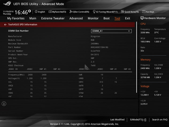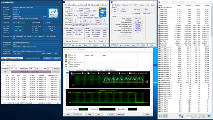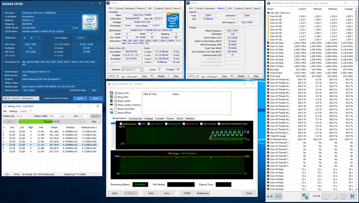 Для выяснения разгонного потенциала платы были использованы процессор Intel Core i7-6900K и комплект памяти Kingston HyperX Fury HX424C15FBK4/32. Забегая вперед, отмечу, что выбранный CPU оказался не самым удачным экземпляром.