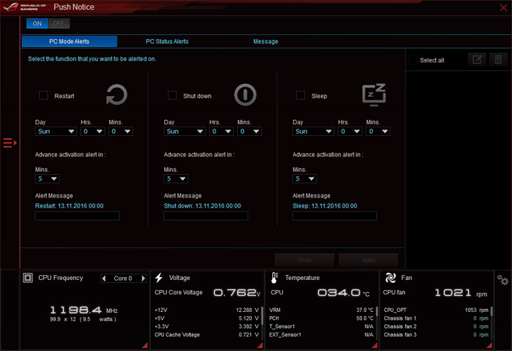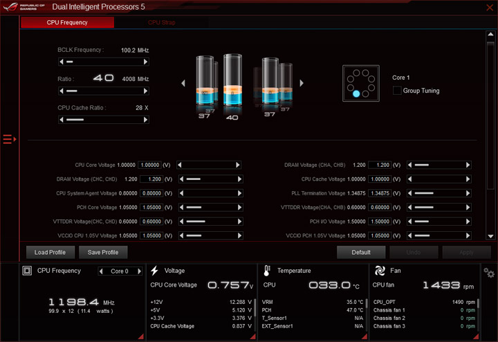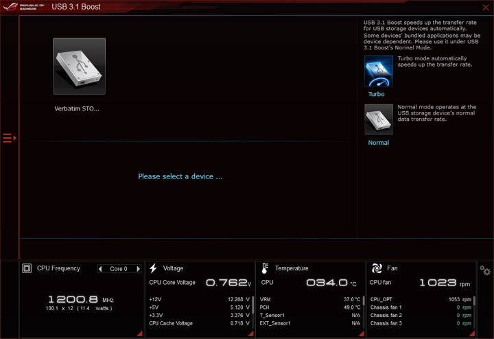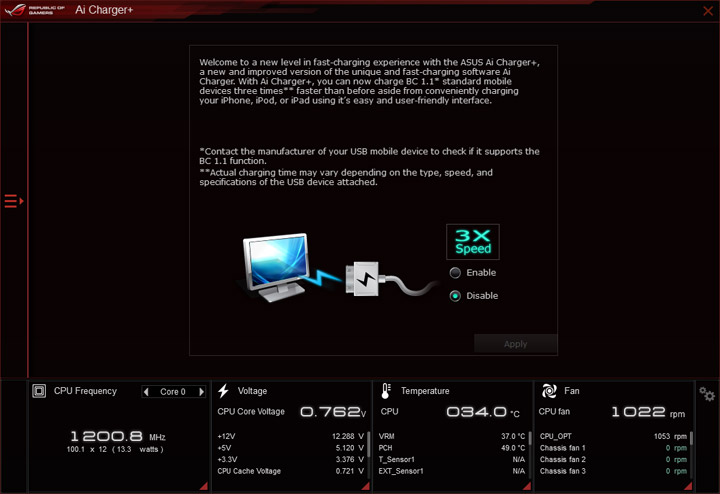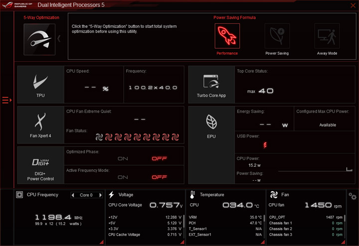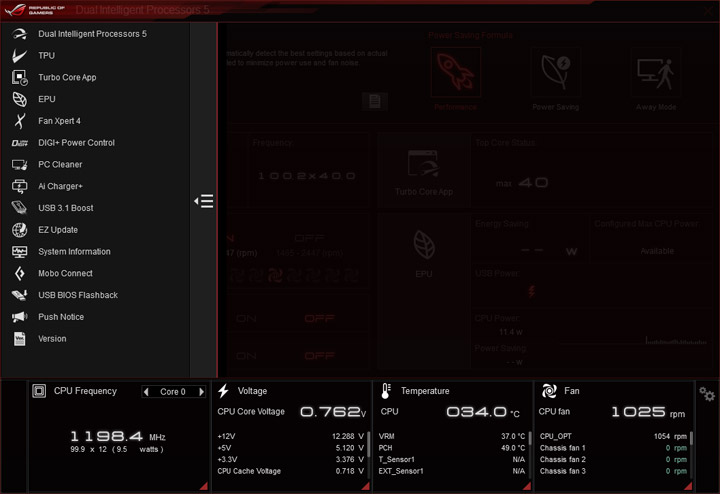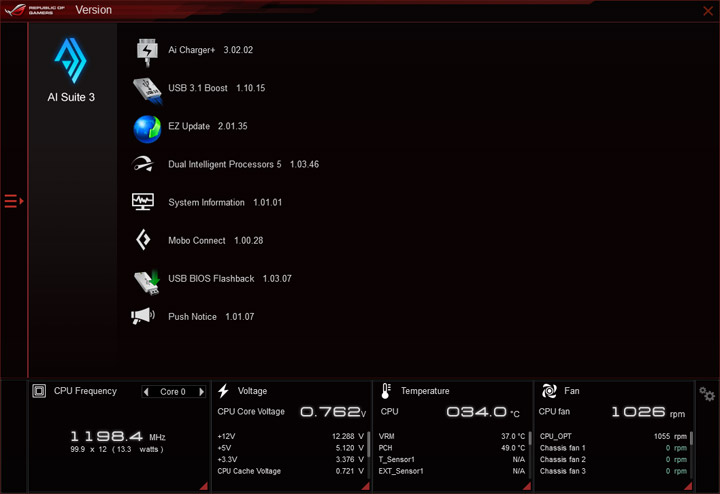 Основной утилитой, как и в прошлые разы, выступает AI Suite 3. Этот программный комплекс содержит в себе средства по настройки параметров платы для осуществления ручного и автоматического разгона, мониторинг, управление вентиляторами, обновления прошивки и многое другое.