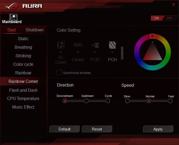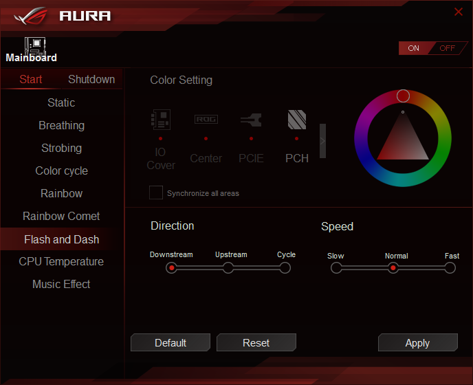 Следующая интересная программа — Aura, предназначенная для настройки подсветки на плате.
