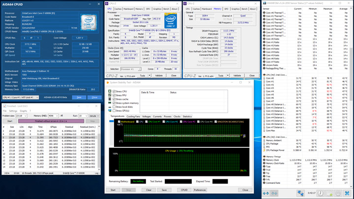 К сожалению, произвести какой-либо разгон самого процессора выше 3700 МГц для всех ядер не увенчалось успехом — он попросту перегревался даже с такой относительно эффективной «водянкой» как SilverStone Tundra TD02!