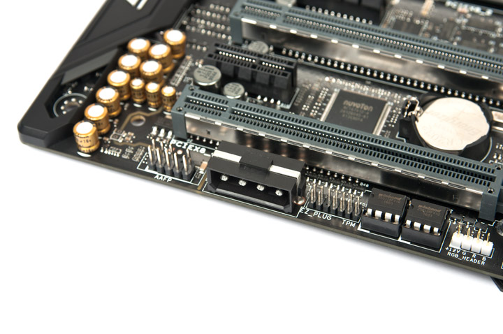 Для организации активного охлаждения внутри системного блока предусмотрено восемь 4-контактных разъемов, один из которых рассчитан на подключение помпы жидкостной системы охлаждения, а еще один позволяет запитать очень мощный вентилятор с током потребления до 3 А. Если и этого будет недостаточно, но плата Fan Extension Card позволит расширить общее число возможных подключений до 12, включая еще три термосенсора вдобавок к одному на самой «материнке». Думаю, этого уж точно хватит на все случаи использования ПК или во время бенчинга.