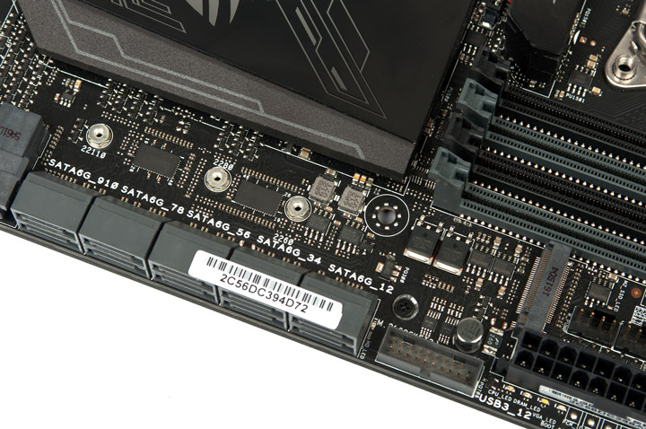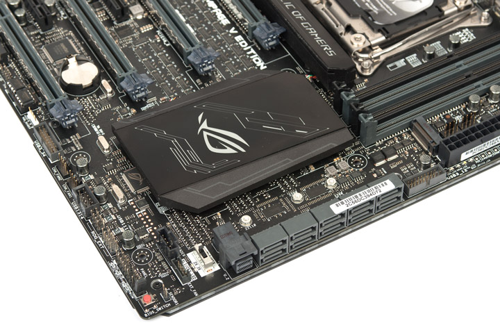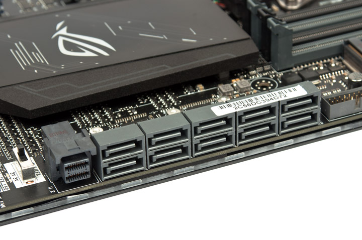 Организация дисковой подсистемы по сравнению с ROG Rampage V Extreme претерпела некоторых изменений. От не снискавшего популярности SATA Express отказались в угоду более прогрессивного и компактного U.2 с поддержкой NVMe, а количество каналов SATA 6Gb/s снижено до 10.