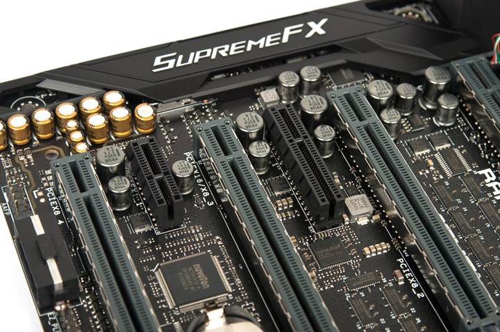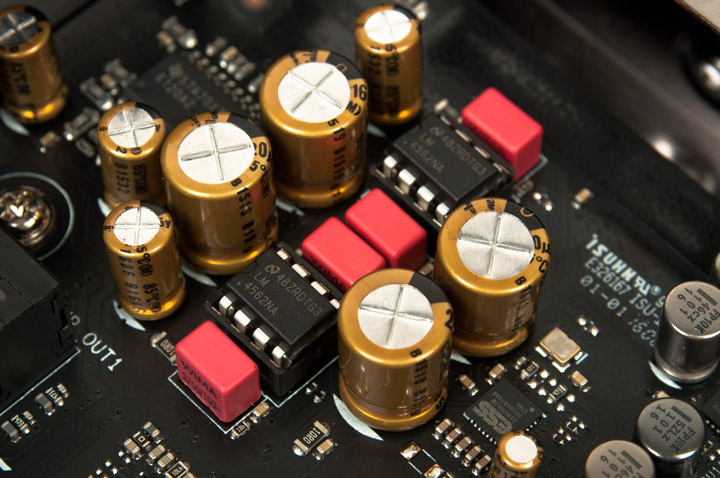 Фирменная звуковая подсистема SupremeFX все также базируется на 7.1 HDA-кодеке Realtek ALC1150, который для уменьшения электромагнитных помех накрыт металлическим экраном. Цепи звукового тракта тоже отделены от остальной части материнской платы изолирующим зазором в медных проводниках, но в отличие от обычной «экстрим»-модели были добавлены два ОУ TI R4580I.