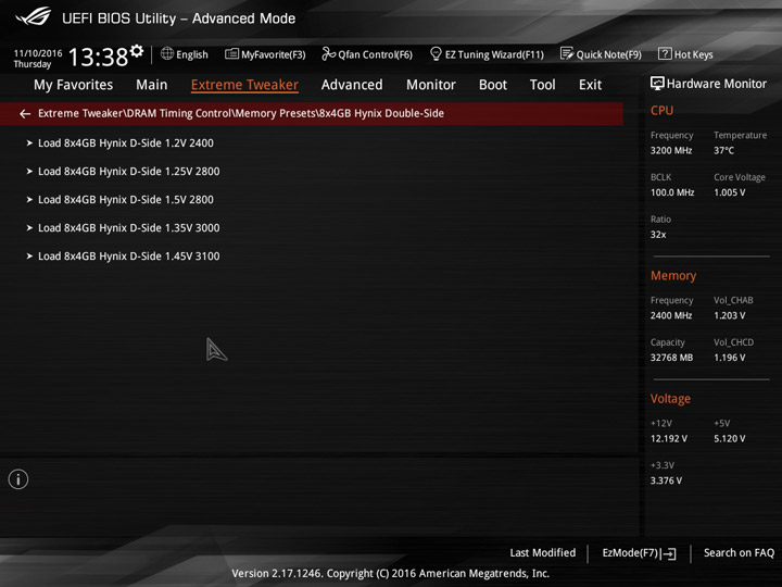 Количество изменяемых параметров памяти, как и во всех продуктах Republic of Gamers, очень высоко.