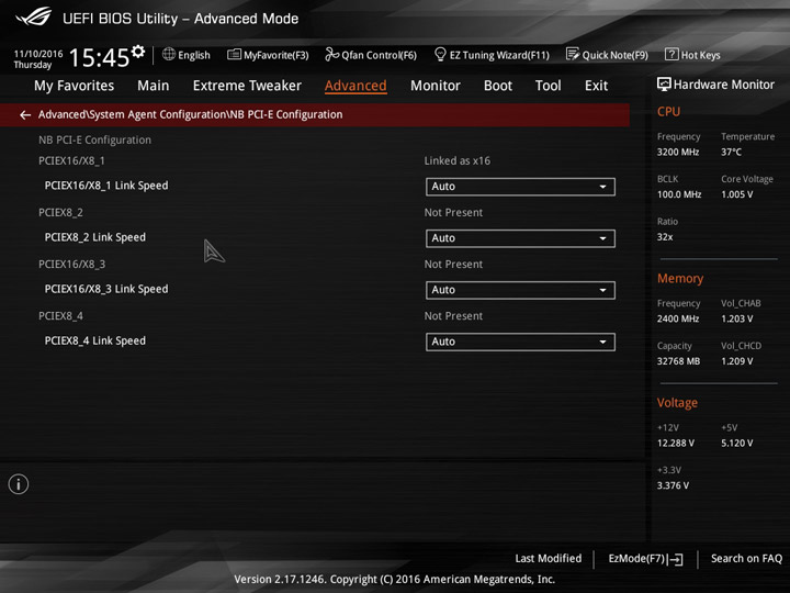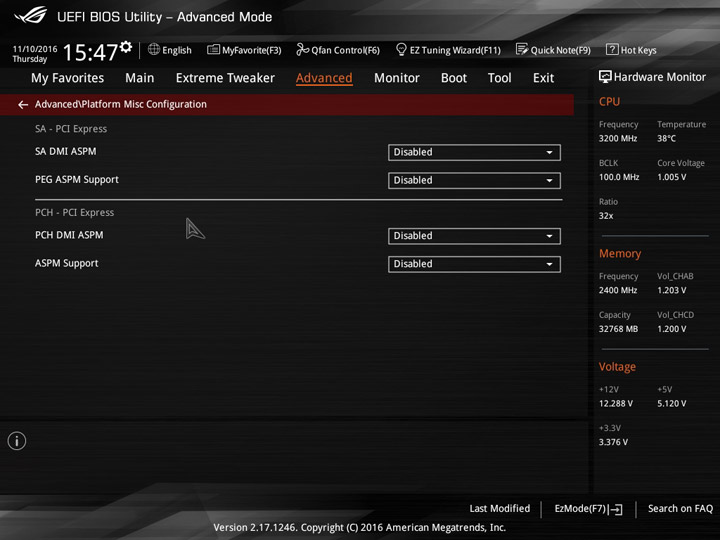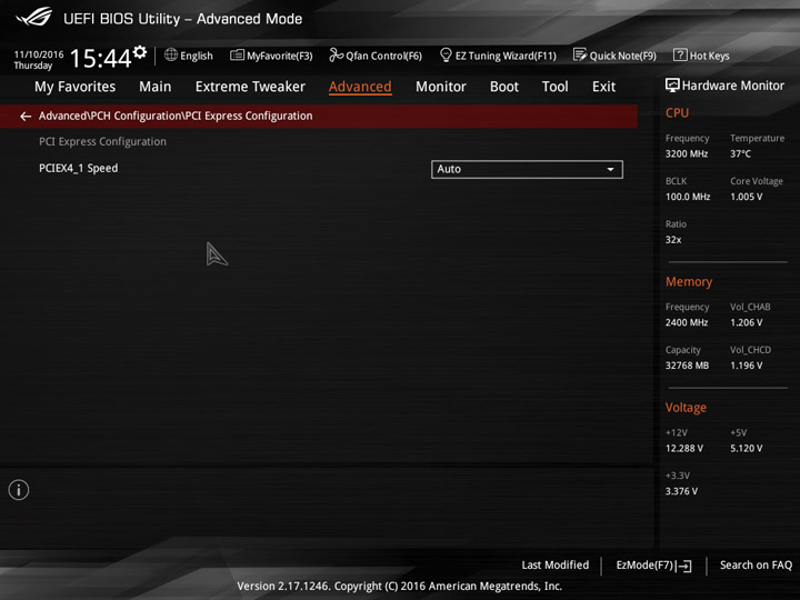 Там же находятся параметры, отвечающие за интегрированные контроллеры, подсветку и режимы работы шины PCI Express.