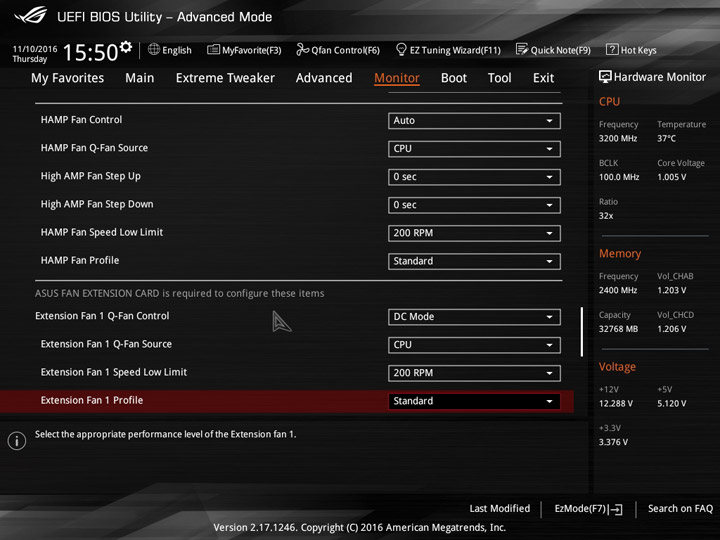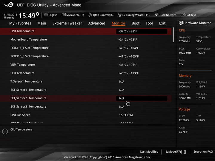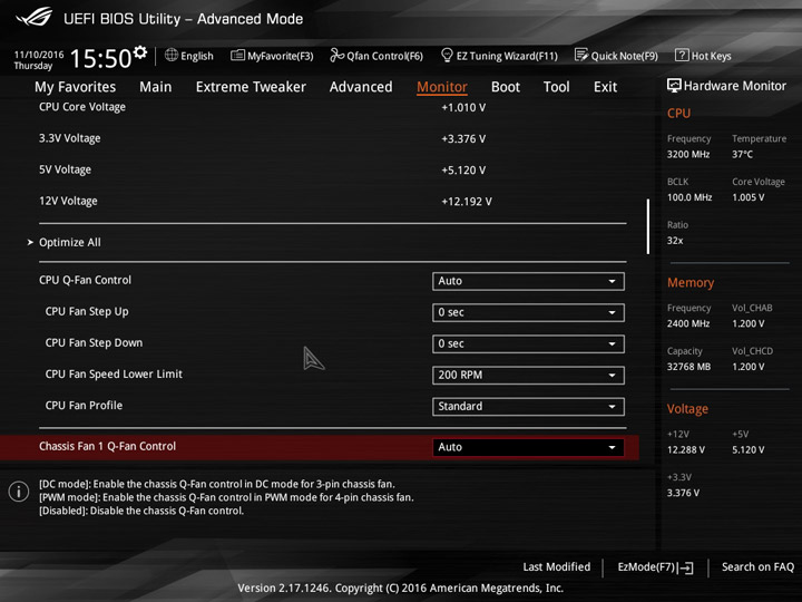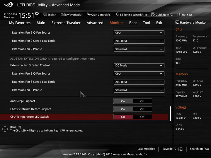 Следить за показателями основных напряжений, температуры и скорости вращения вентиляторов с их управлением пользователь сможет в разделе Monitor.