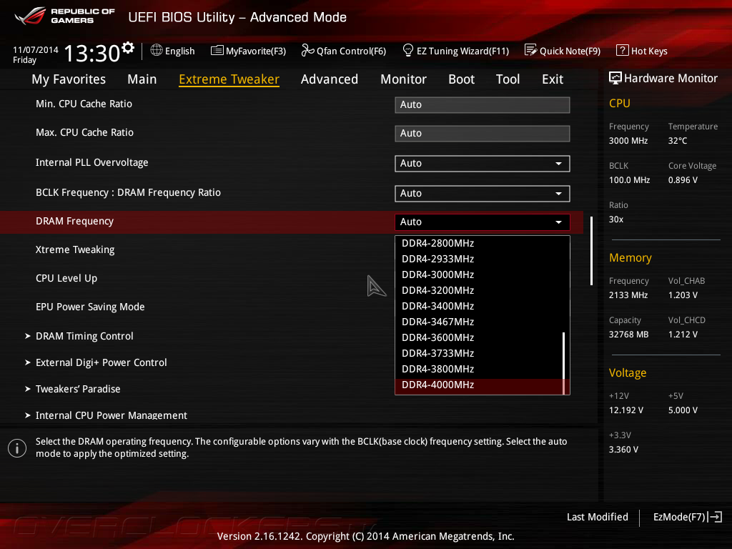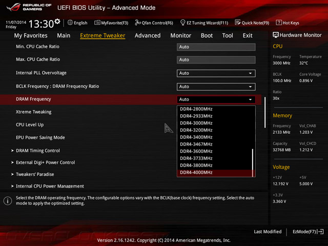 Для подсистемы ОЗУ доступны тактовые частоты до 4000 МГц включительно, а многочисленные настройки таймингов и других второстепенных параметров сосредоточены в подменю DRAM Timing Control.